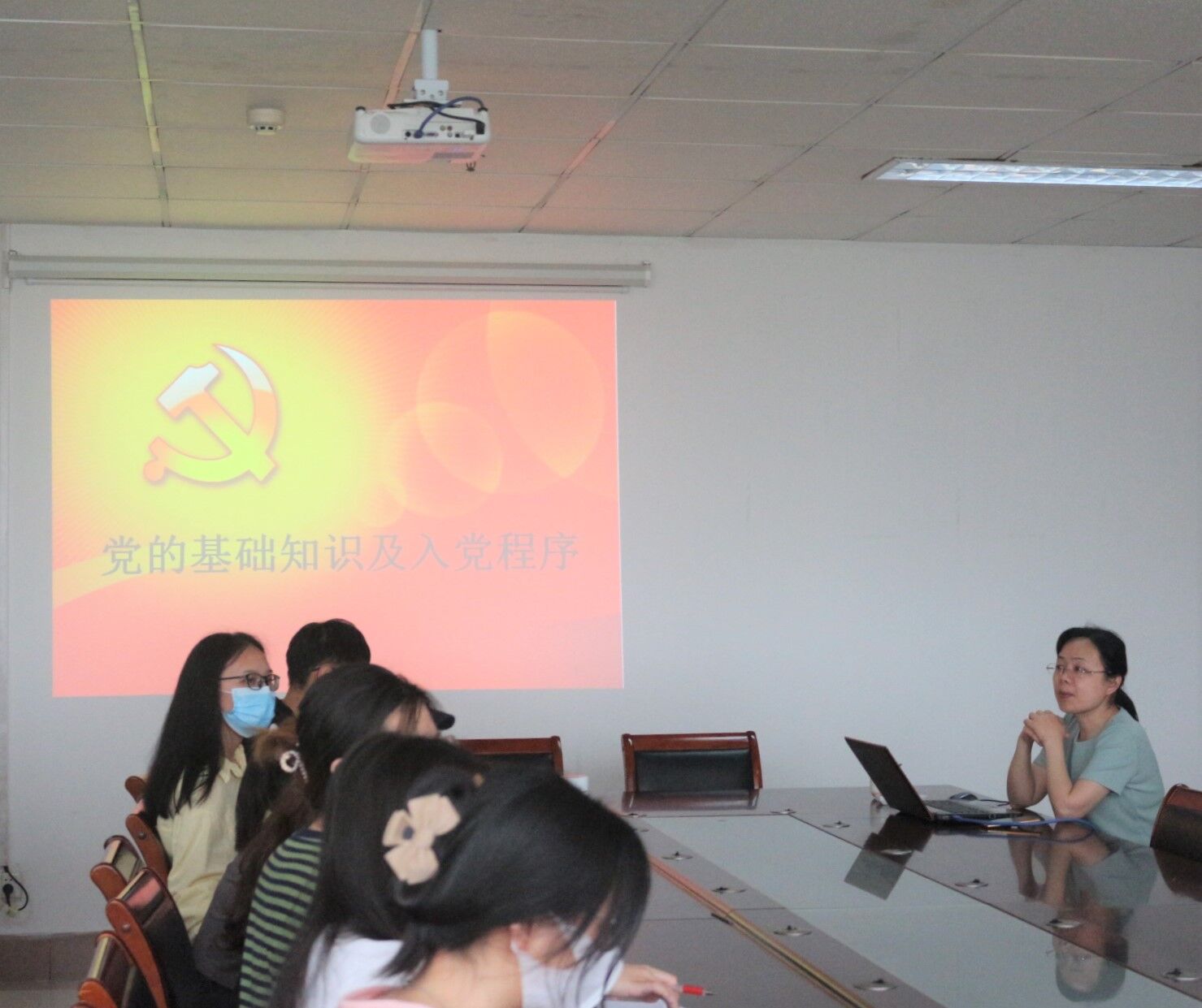 颜彩媛以“党的基本知识、入党程序及要求”为主题,从党的性质、宗旨、目标、纲领和章程等方面展开,详细介绍了发展共产党员的总体要求和程序,以及申请入党的条件。