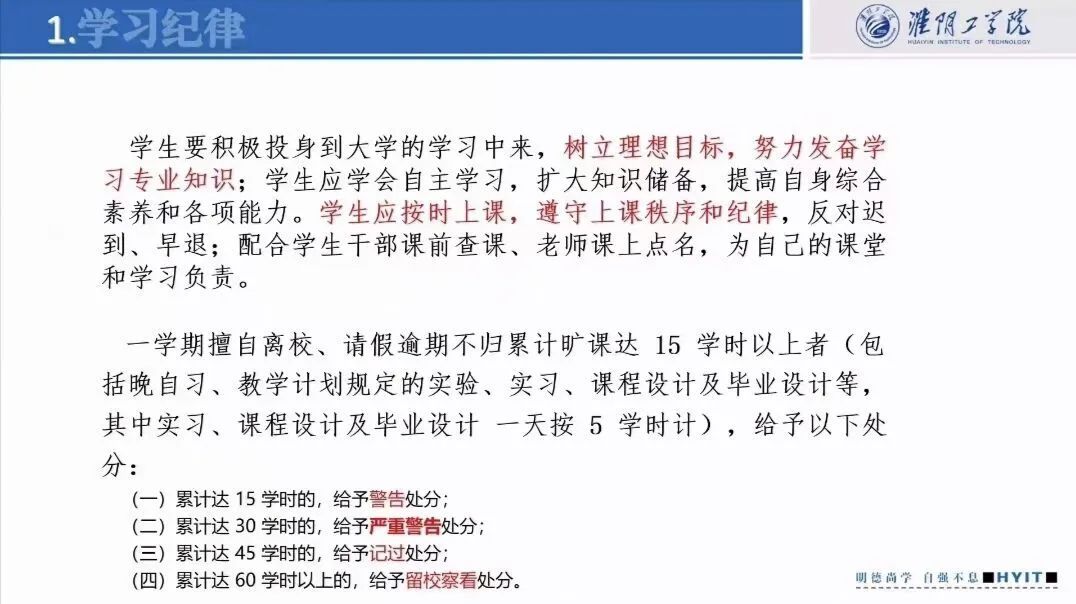 时正杰从自主学习能力切入第一部分。他鼓励同学们树立理想目标,努力发奋学习;找到学习状态;提升综合素养,遵守考试纪律。敬畏规则,方能行之有度。第二部分日常管理规定又分为住宿管理(包括外宿,晚归等),用电安全管理,早锻炼管理和其他违纪处理。时正杰强调:有需求或不便都可提前向学院申请,坚决抵制先斩后奏等行为。最后,他提醒同学们预防网络诈骗,提高警惕性。