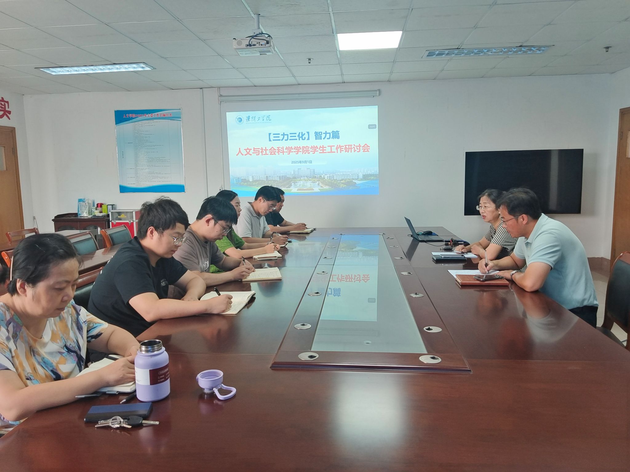 2025年9月1日上午,人文与社会科学学院在尚学楼9楼会议室召开新学期第一次辅导员工作例会,会议由院党委书记田萍主持,党委副书记、副院长管永刚与全体辅导员参加会议。