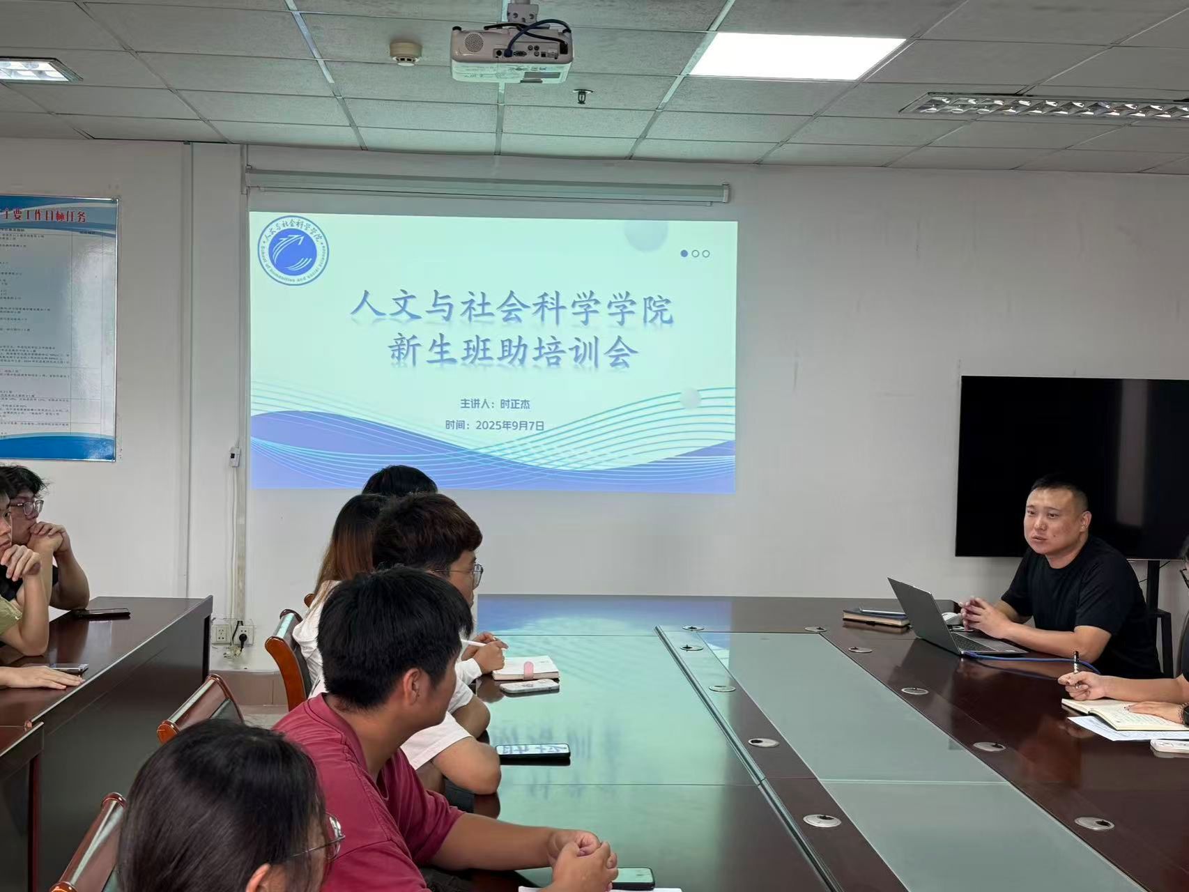 金秋送爽,丹桂飘香,又是一年迎新工作准备时,为切实做好开学迎新工作,9月7日上午,人文与社会科学学院2025级迎新工作布置会在学院会议室召开,会议由学院学工办主任时正杰主讲。