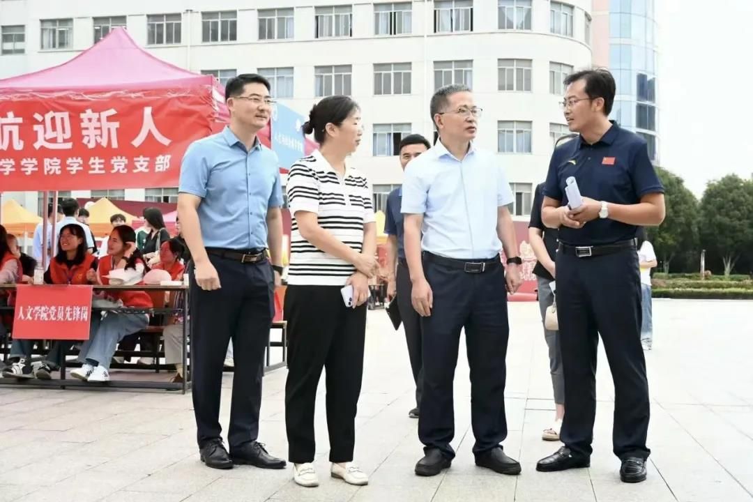 校党委书记常绿带领一行人员抵达学院迎新现场,仔细询问新生报到的进展情况,亲切看望了前来报到的新生与家长,还向投身迎新工作的教职工及学生志愿者表达了慰问。