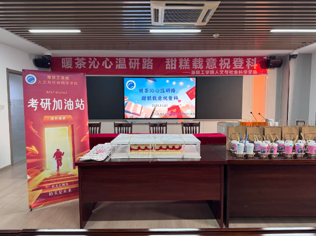 2025年11月21日下午,淮阴工学院人文与社会科学学院在主楼1606教室成功举办“冬日考研慰问送温暖”活动。活动以“暖茶沁心温研路,甜糕载意祝登科”为主题,旨在为正处于考研冲刺阶段的学子送上学院的关怀与鼓励。学院党委副书记管永刚、关工委老师郁大海、分团委书记吴翔及部分考研学生参与本次活动。