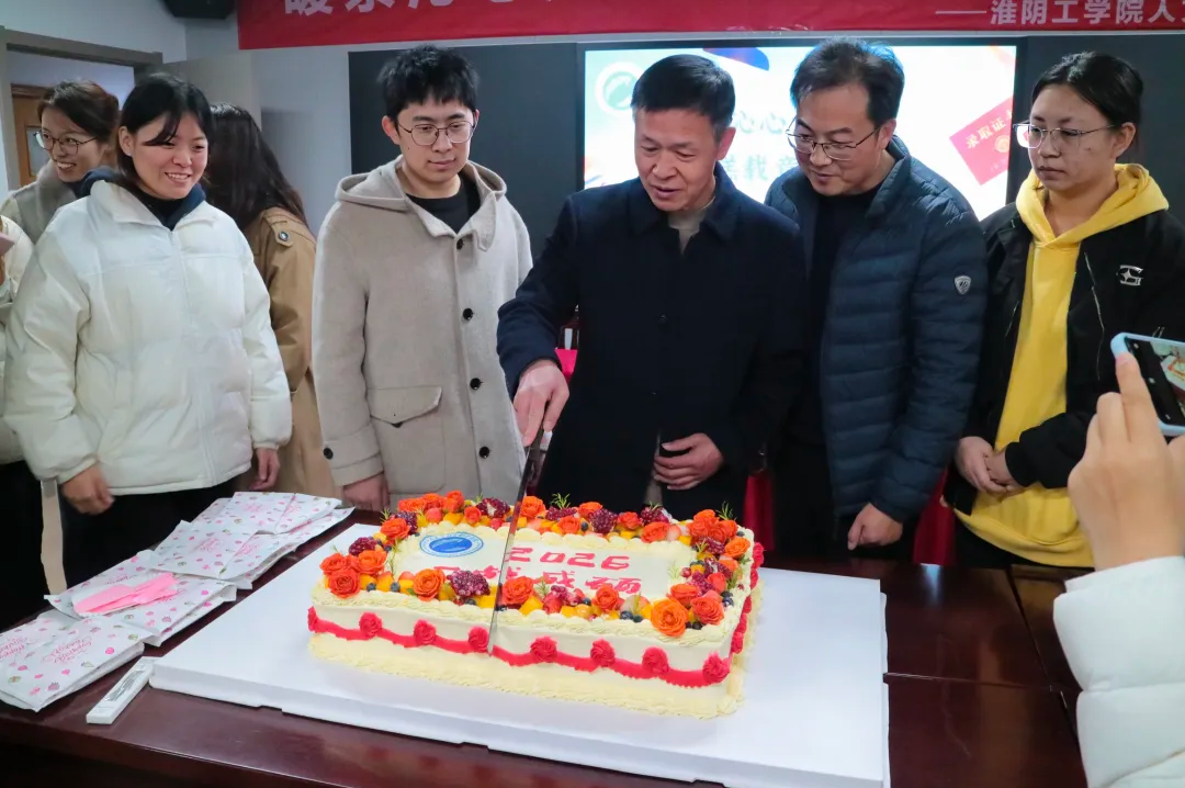 随后进行的温情互动环节将活动推向高潮。与会领导共同切开寓意“2026 一站成硕”的定制蛋糕,并将一杯杯热咖啡递到学生手中。现场气氛温馨融洽,学子们在分享茶点之余,也感受到了浓厚的集体温暖与支持。