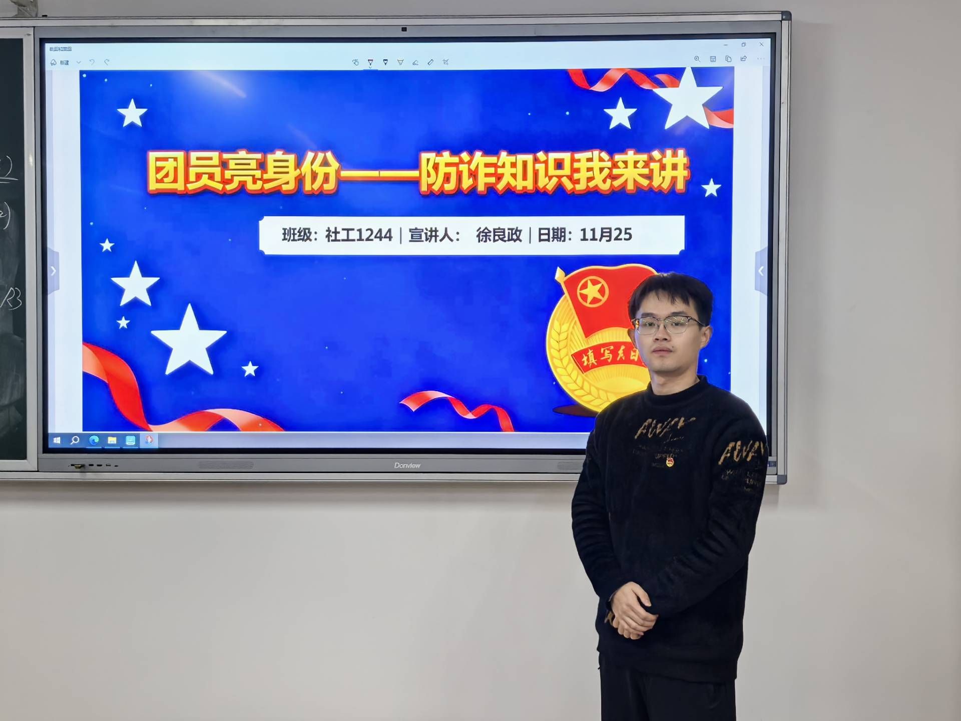 本次活动一改以往单向灌输的模式,由各班新发展的共青团员代表担任主讲人。他们立足本班实际,利用班会、课余时间,围绕“游戏账号交易”、“刷单返利”、“冒充亲友老师”、“虚假购物”等在学生群体中高发的诈骗类型,进行了深入浅出的剖析。代表们精心准备了PPT、短视频和案例漫画,用同龄人熟悉的语言和方式,生动揭示了诈骗分子的常用伎俩和话术,让防诈知识更加入脑入心。