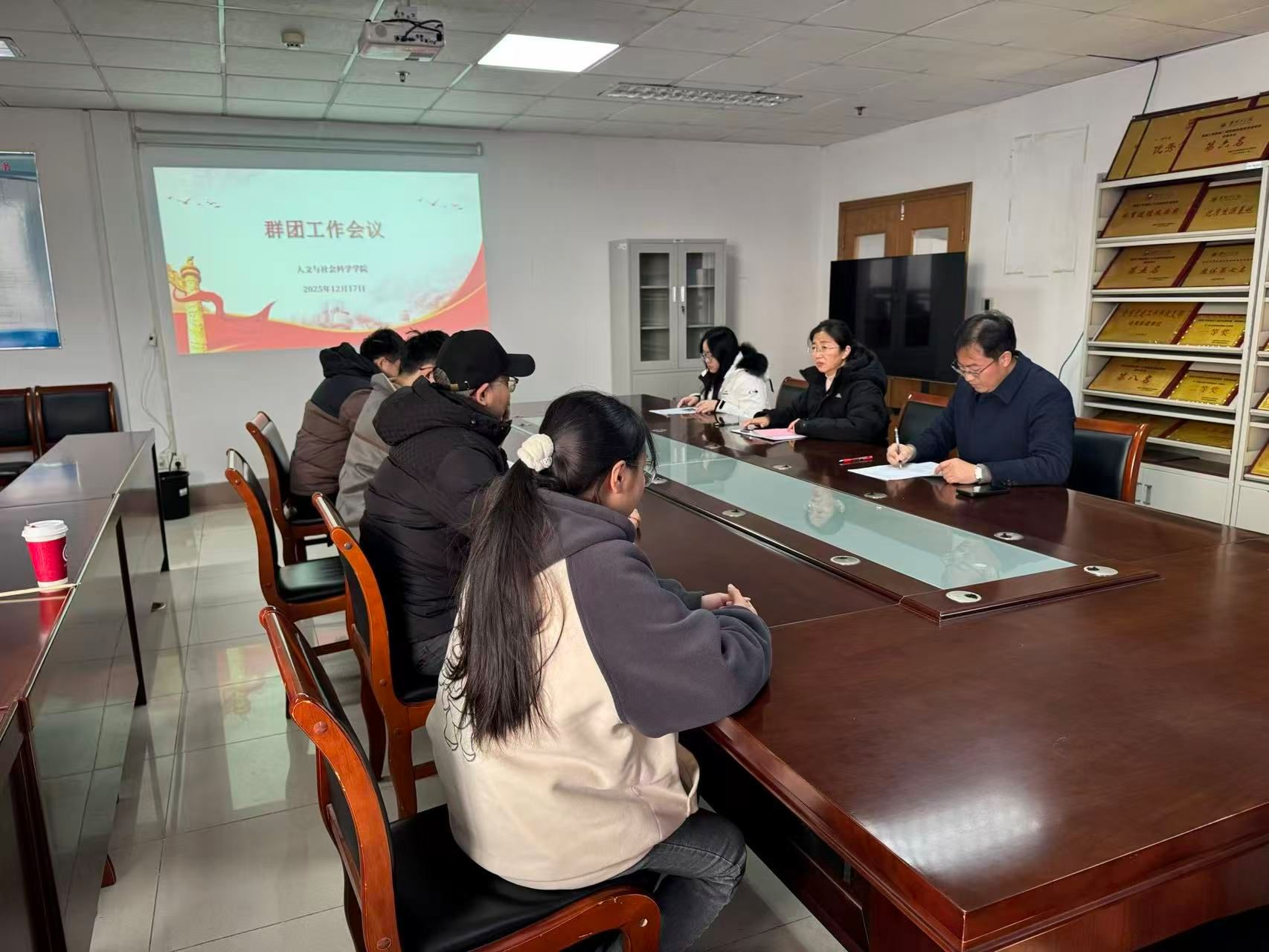 12月17日,人文与社会科学学院在尚学楼A902会议室召开群团工作会议,由学院党委书记田萍主持。会议指出,过去一年,各群团组织围绕中心、服务大局,在加强思想政治引领、联系服务师生、助力学院改革发展等方面主动作为,取得了积极成效。最后,田萍分析了当前学院面临的新形势新任务,对下一步重点工作作出部署安排,并鼓励各群团组织负责人扎实工作,团结师生,以更加饱满的热情、更加昂扬的斗志,为开创人文与社会科学学院事业发展新局面而共同奋斗。
