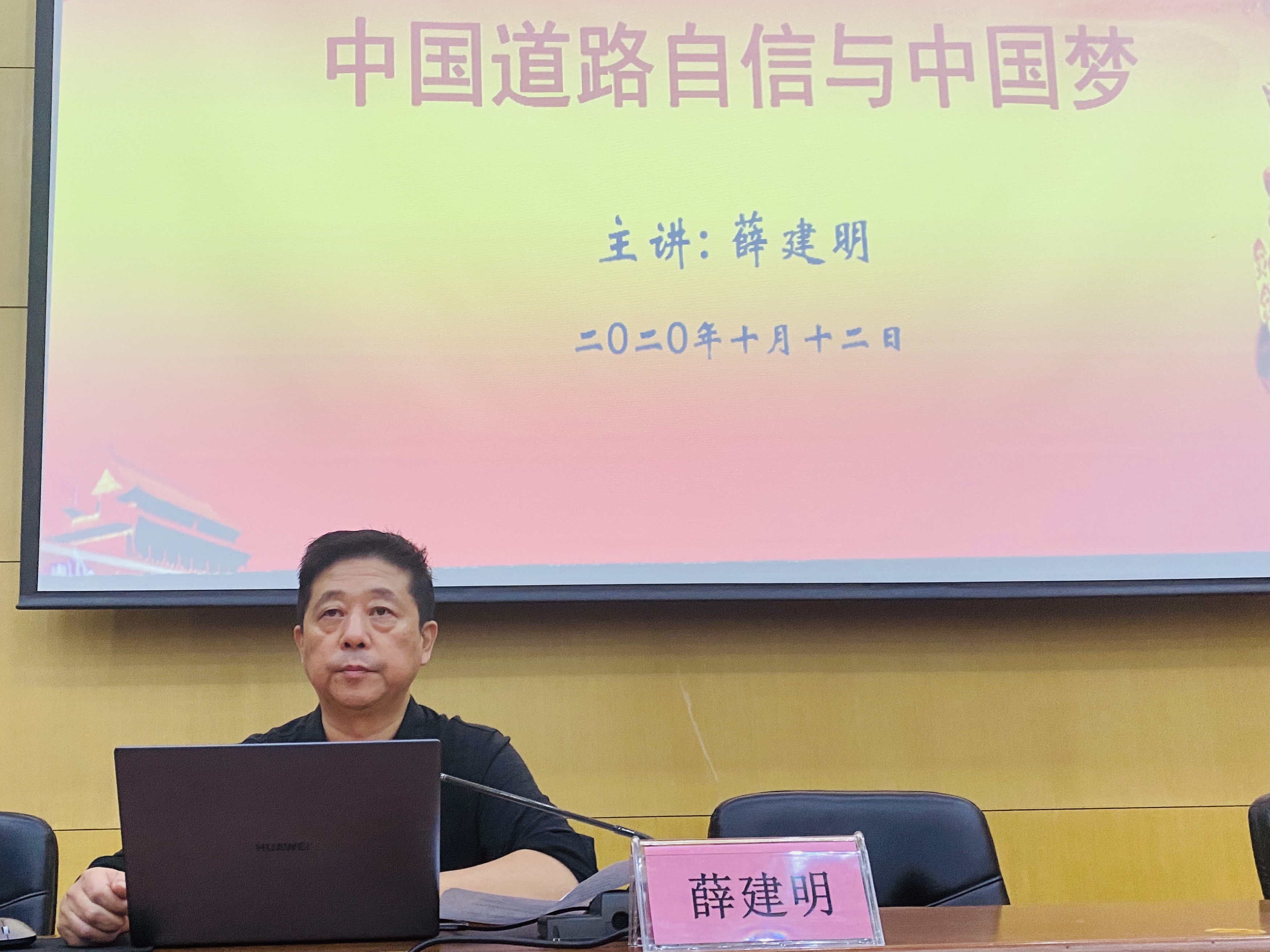 在于书记对薛建明馆长简单介绍后,薛馆长从中国道路理论解读、中国道路自信源于中国力量、工业革命、民生福祉、科技创新以及中国梦与成才梦等六个方面为我们上了一堂爱国主义教育课、爱校荣校教育课、职业生涯规划课和立志报国成长成才的梦想课。 薛馆长着重强调新一代青年要从重塑认知,接纳变化;遵守规则,严守纪律;职业生涯,尽早规划;拆解目标,掌握节奏;合络理利用手机网络;爱校荣校、砥砺成长等层面严格要求自己,把学习作为主要任务,作为一种责任和精神追求。坚信自信源于发展、发展源于奋斗,以实际行动将自己塑造成可堪大用、能负重任的栋梁之才,为中国梦添砖加瓦! 最后于书记对此次讲座进行总结性发言,并对薛馆长表示感激之情。