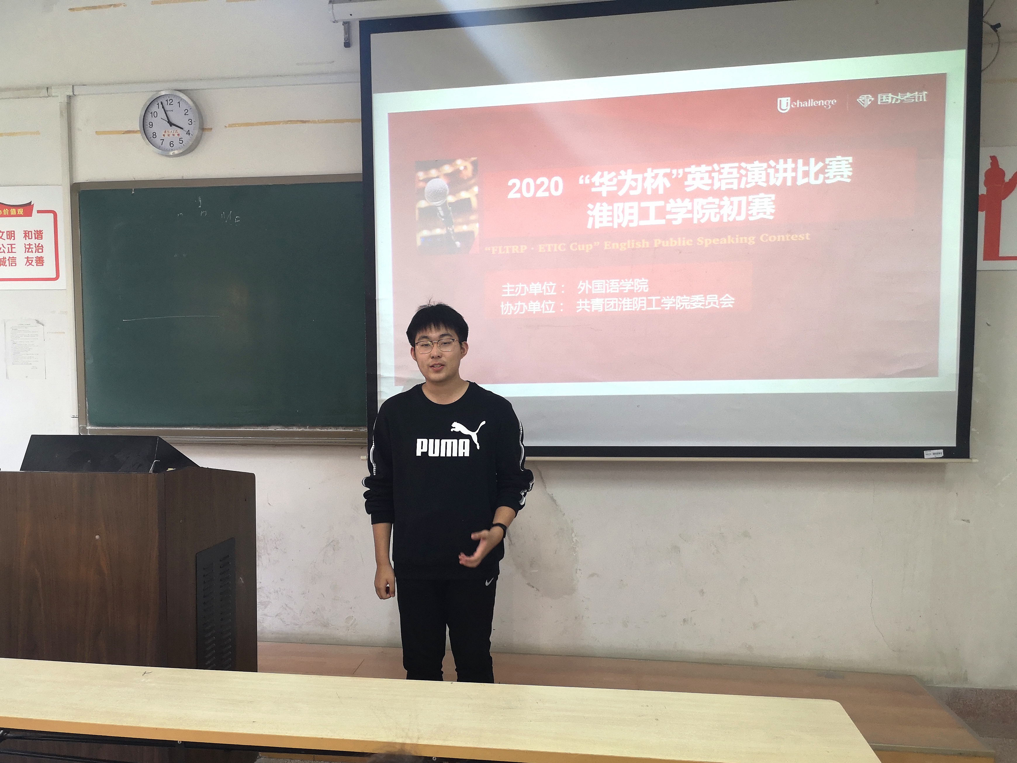 为使大家充分展现英语能力,渲染校园英语的浓厚学习氛围。2020年10月24下午2:30,外研社演讲比赛在尚学楼b103、b105举行初赛。各院系报名人员准时参赛。