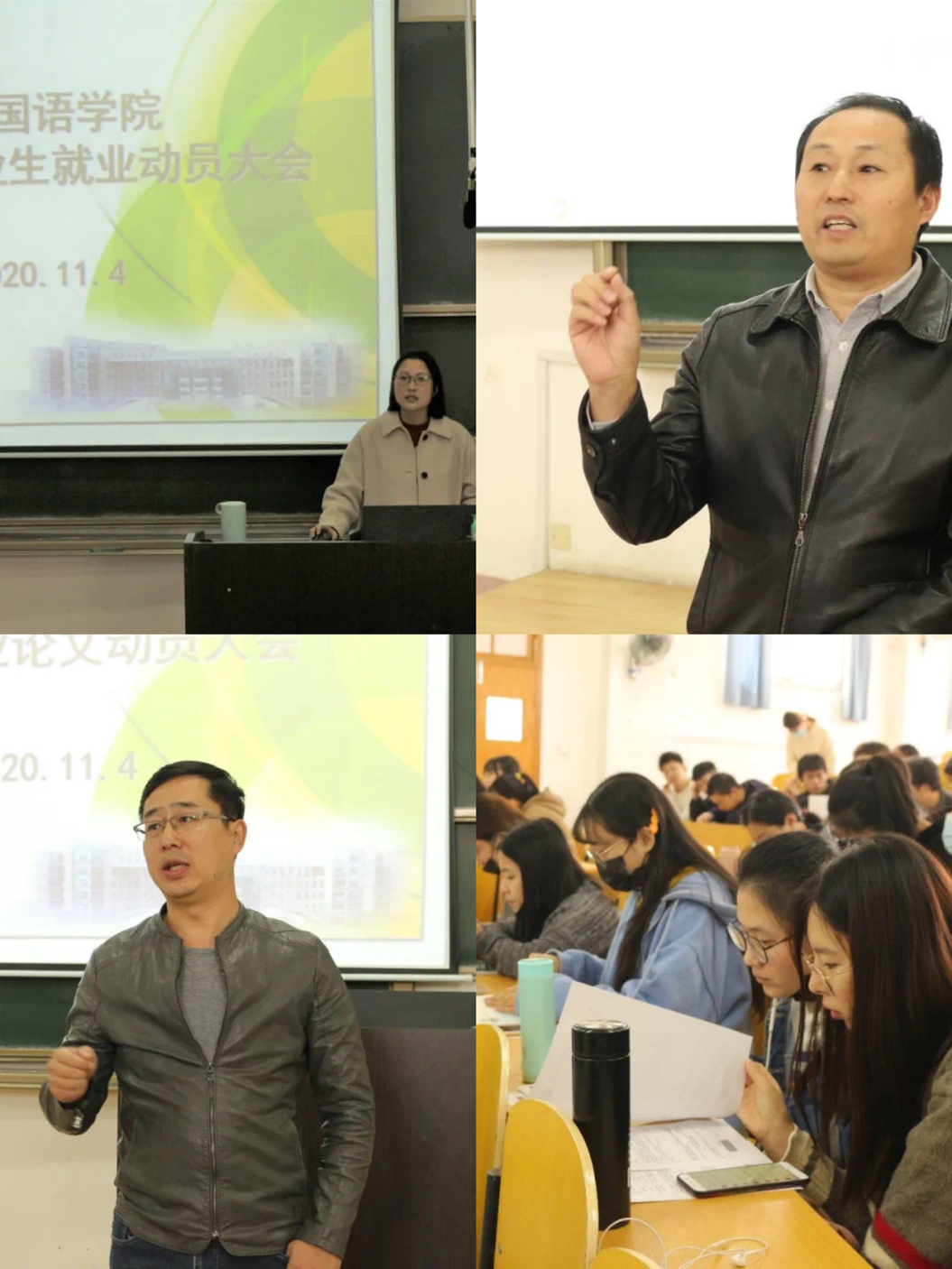 为了做好2021届毕业设计暨就业工作,外国语学院于11月4日下午14:30在尚学楼A阶305召开外国语学院2021届毕业论文及毕业生就业动员大会。外国语学院党委副书记于文天、副院长孙建光、学工办主任孙伶俐以及17级全体毕业生参加了此次大会。