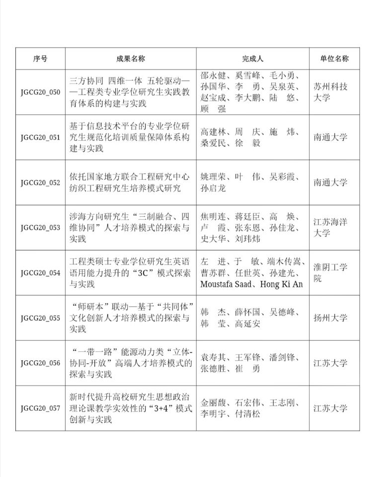近日,江苏省研究生教育指导委员会公布了2020年江苏省研究生教育改革成果评选结果,外国语学院牵头、左进教授团队申报的“工程类硕士专业学位研究生英语语用能力提升的‘3C’模式探索与实践”荣获优秀奖。本次评选共有57项成果获奖,其中,一等奖9项,二等奖16项,优秀奖32项。该奖项是本次评选我校唯一获奖成果,也是我院首次获得省级教学成果奖,实现了外国语学院教学成果奖项的新突破。