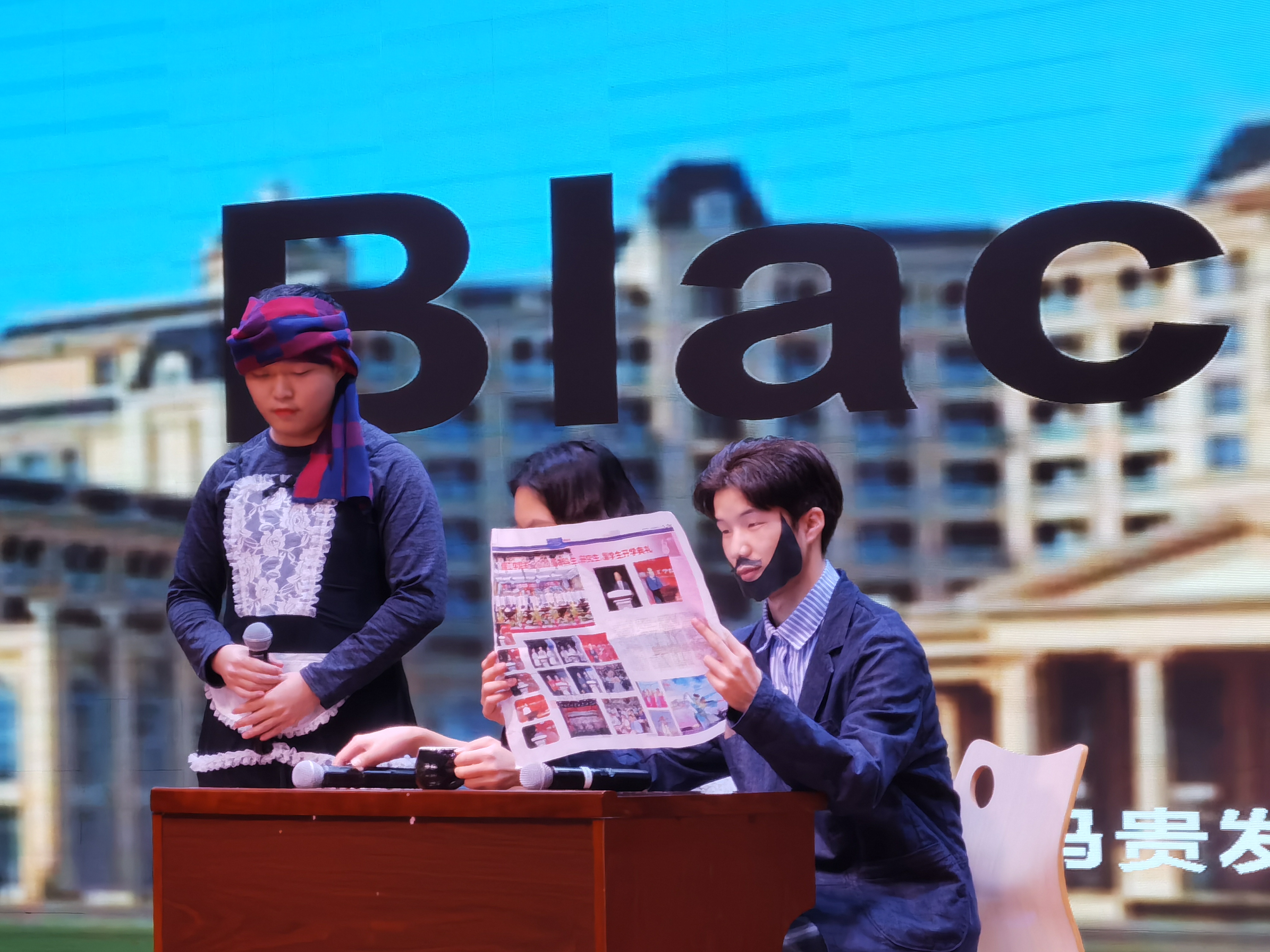 在两位主持人流利的英语口语报幕中,此次英语文化节汇报演出拉开帷幕。此次汇演以比赛的形式带给大家一场视听盛宴,大一进行的是英语歌曲比赛和英语朗读比赛,大二进行的是英语配音比赛,大三进行的是英语戏剧比赛。