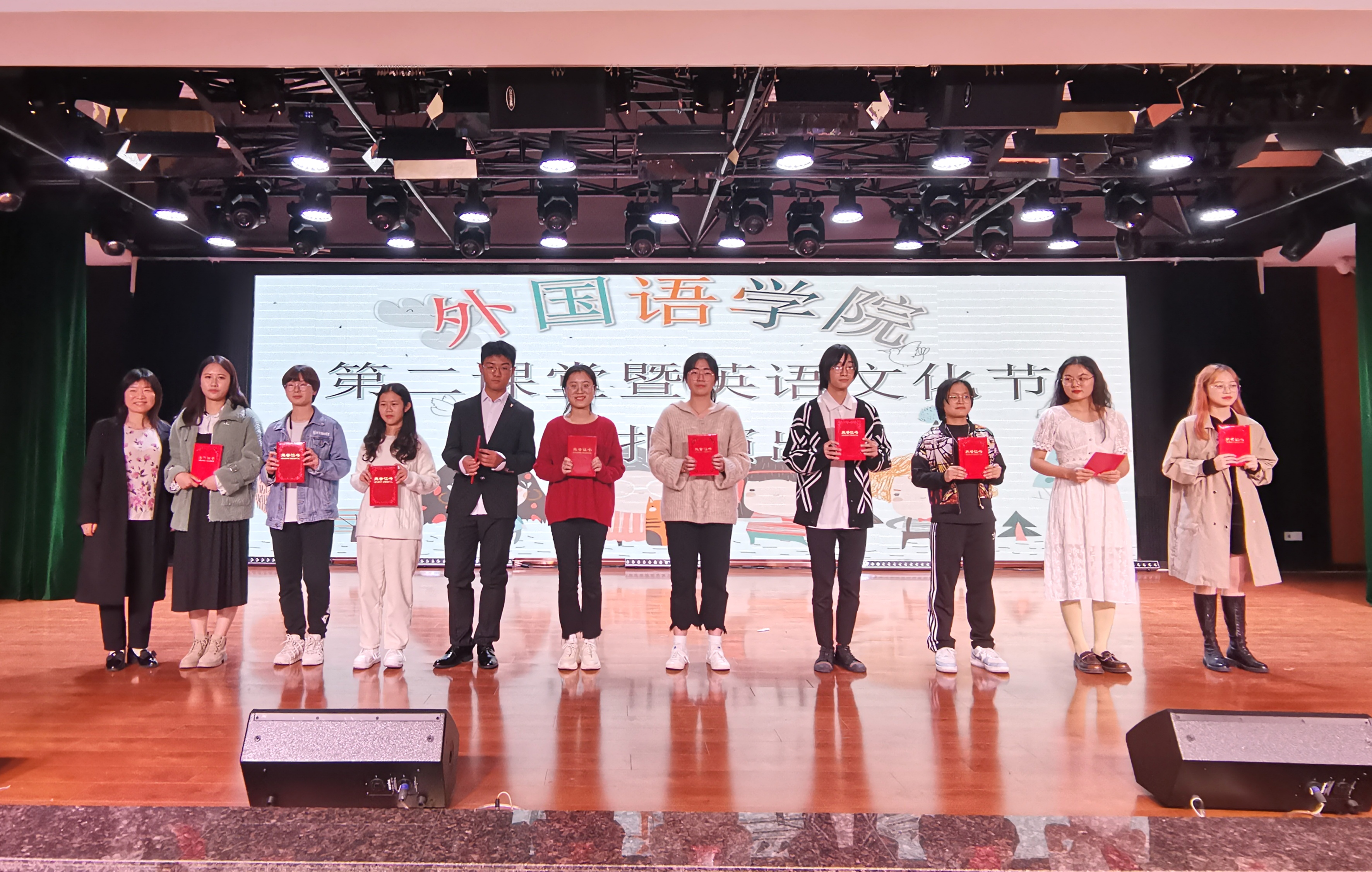 为活跃校园文化气氛,提高我院学生综合素质和艺术修养,丰富课余英文文化的学习生活,营造良好的英语学习环境。2020年11月18日,外国语学院英语系和外国语学院团委共同举办的第二课堂英语系列比赛活动在大学生活动中心四楼举行。外国语学院党委书记何其中、院长左进、党委副书记于文天、副院长孙建光、副院长胡庭树、英语系老师、以及各年级部分同学观看此次文化汇演。