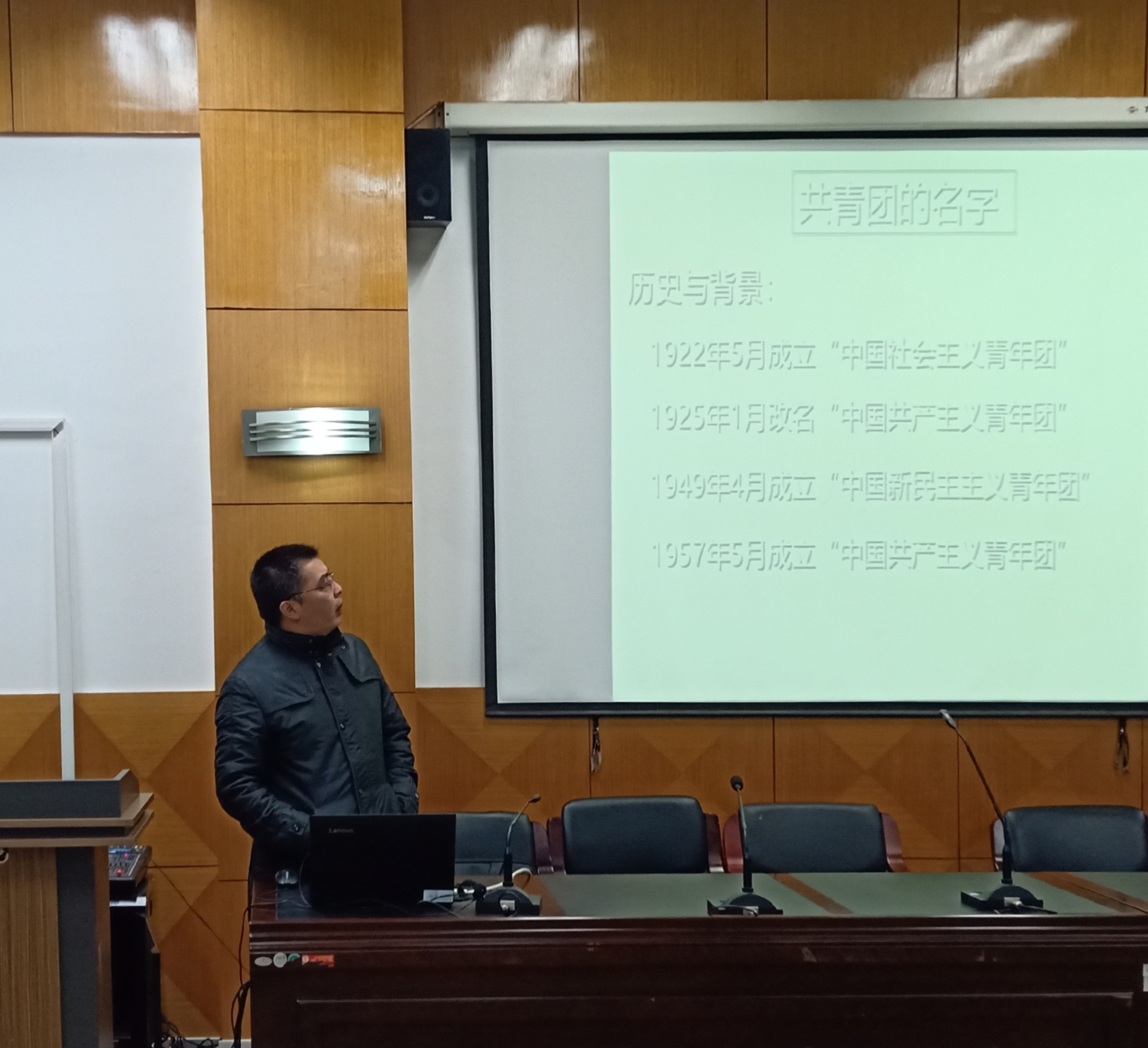 首先,夏老师对共青团的历史背景做了简要介绍,接着阐述了党的章程总则以及现阶段的基本任务。然后,他从团部的组织生活形式以及“三会二制一课”制度方面入手,简明扼要地介绍了团的基层组织;最后,会议接近尾声,他详细地为同学们介绍了党的基本知识和入党的过程。