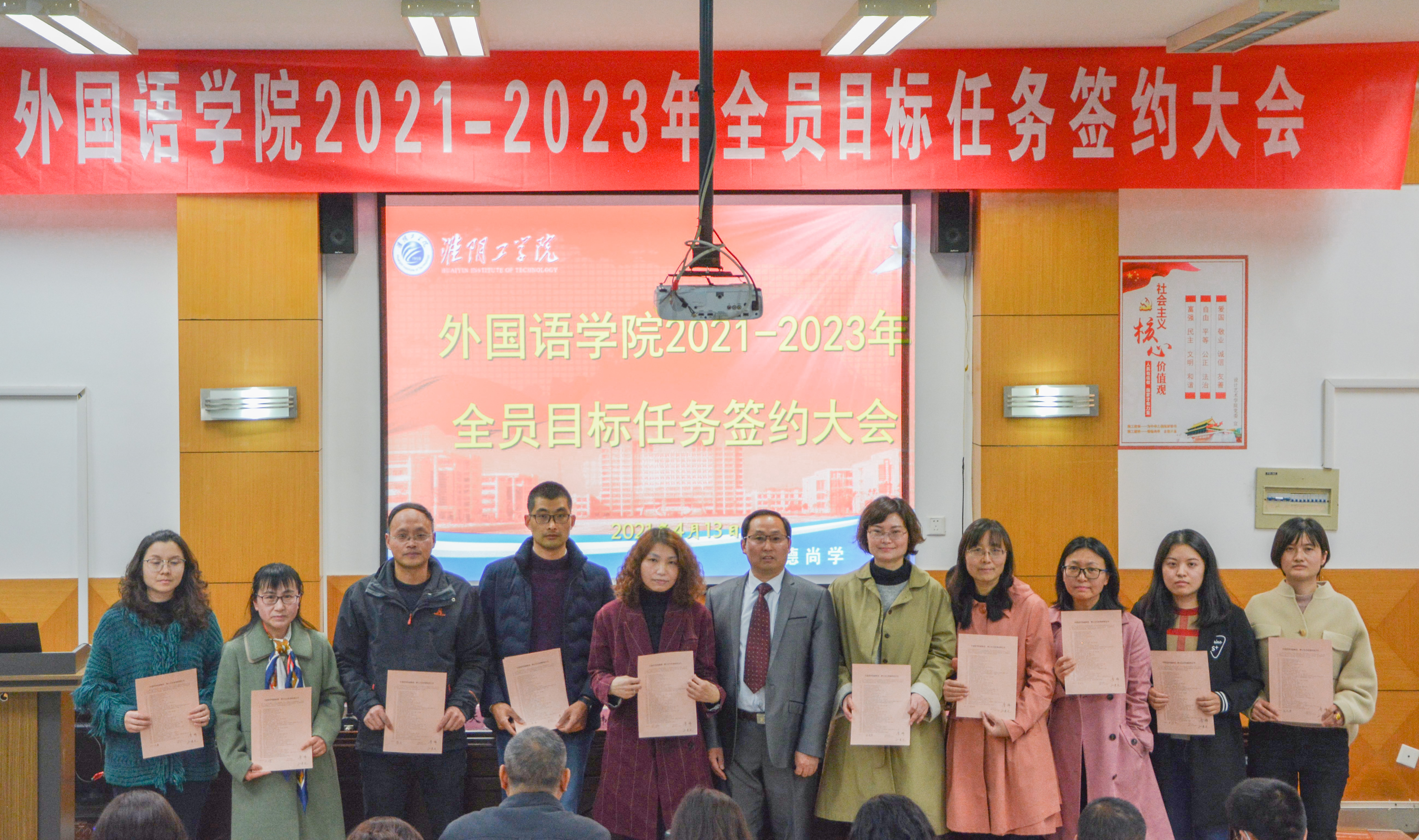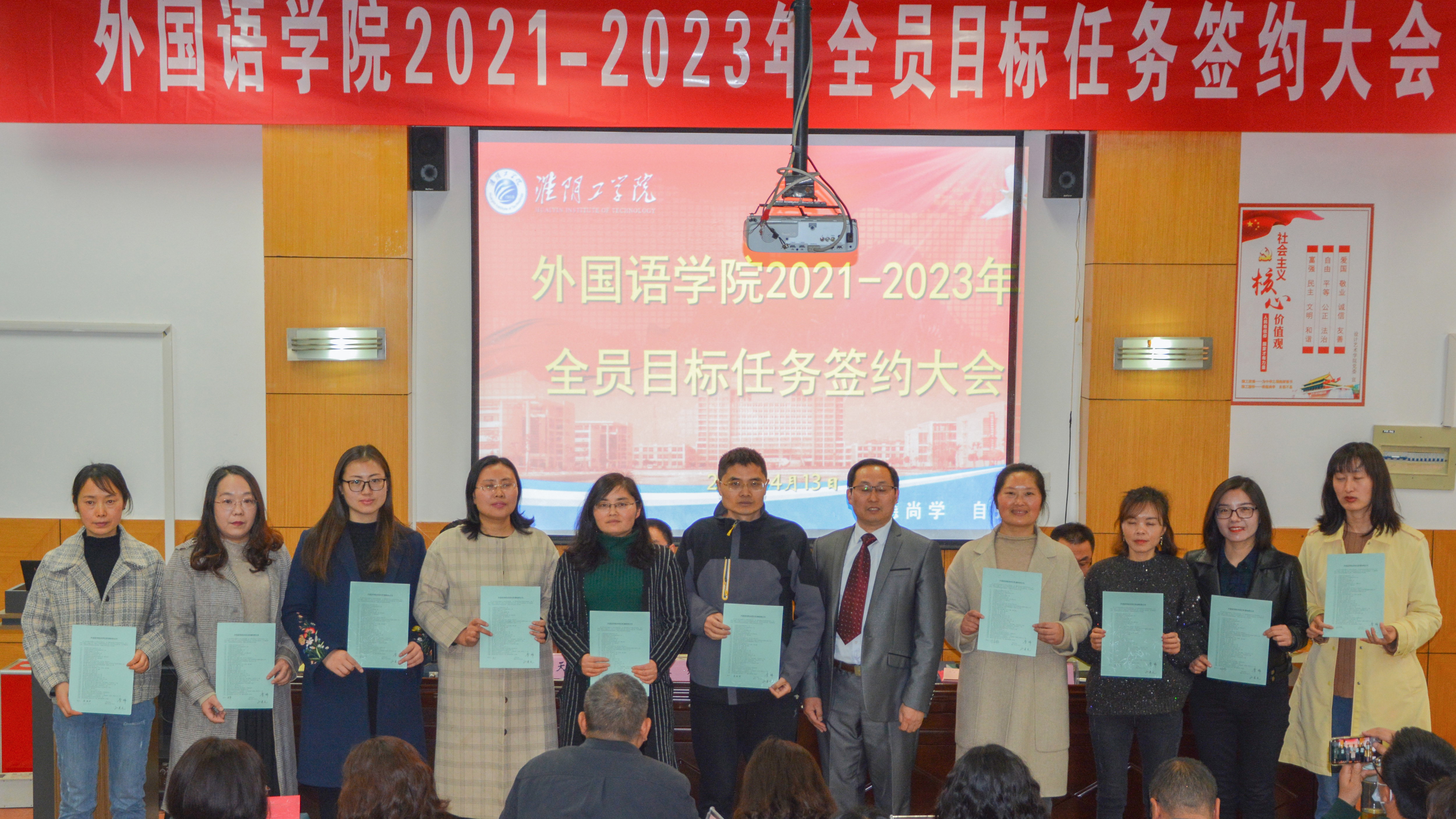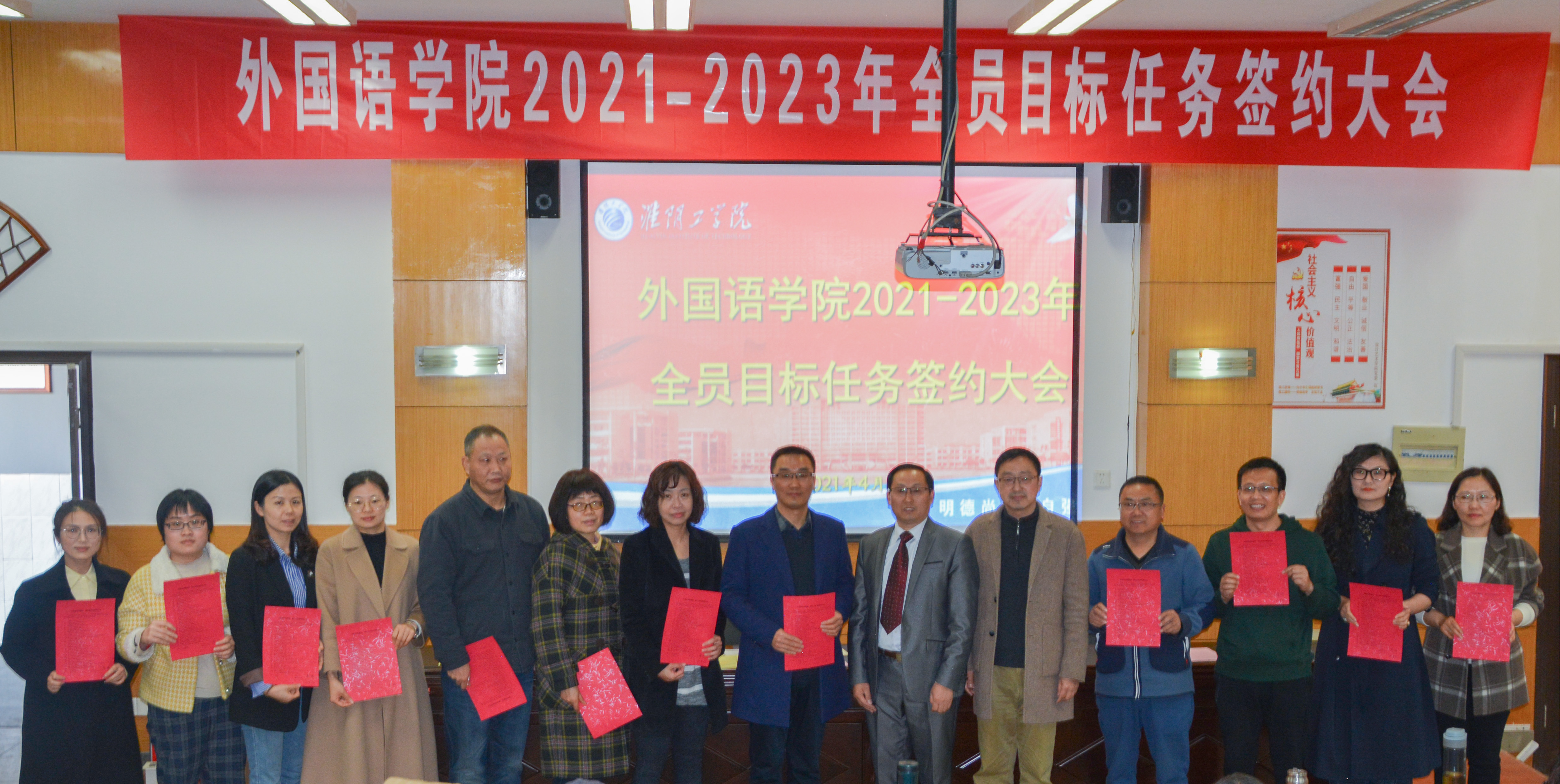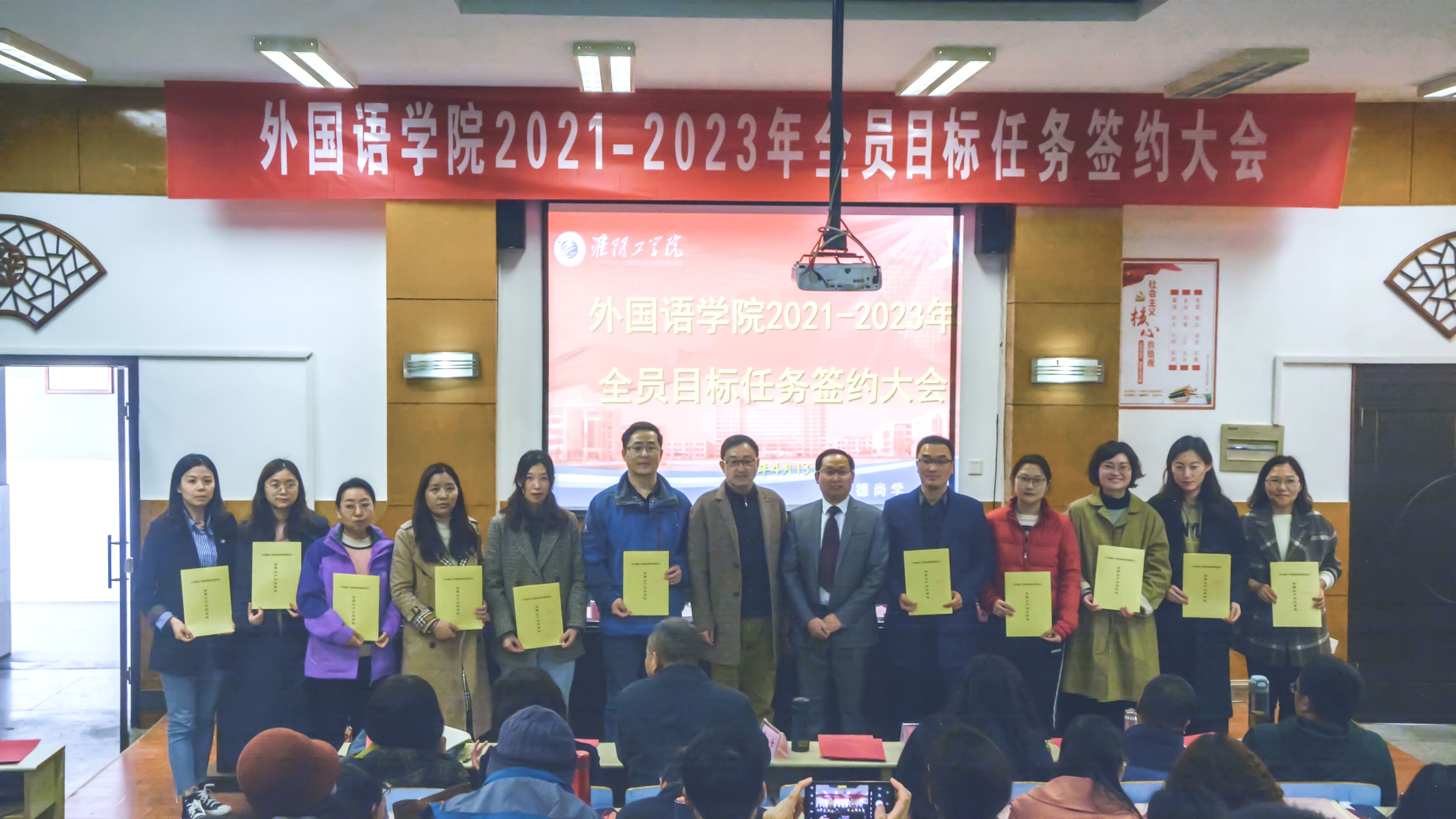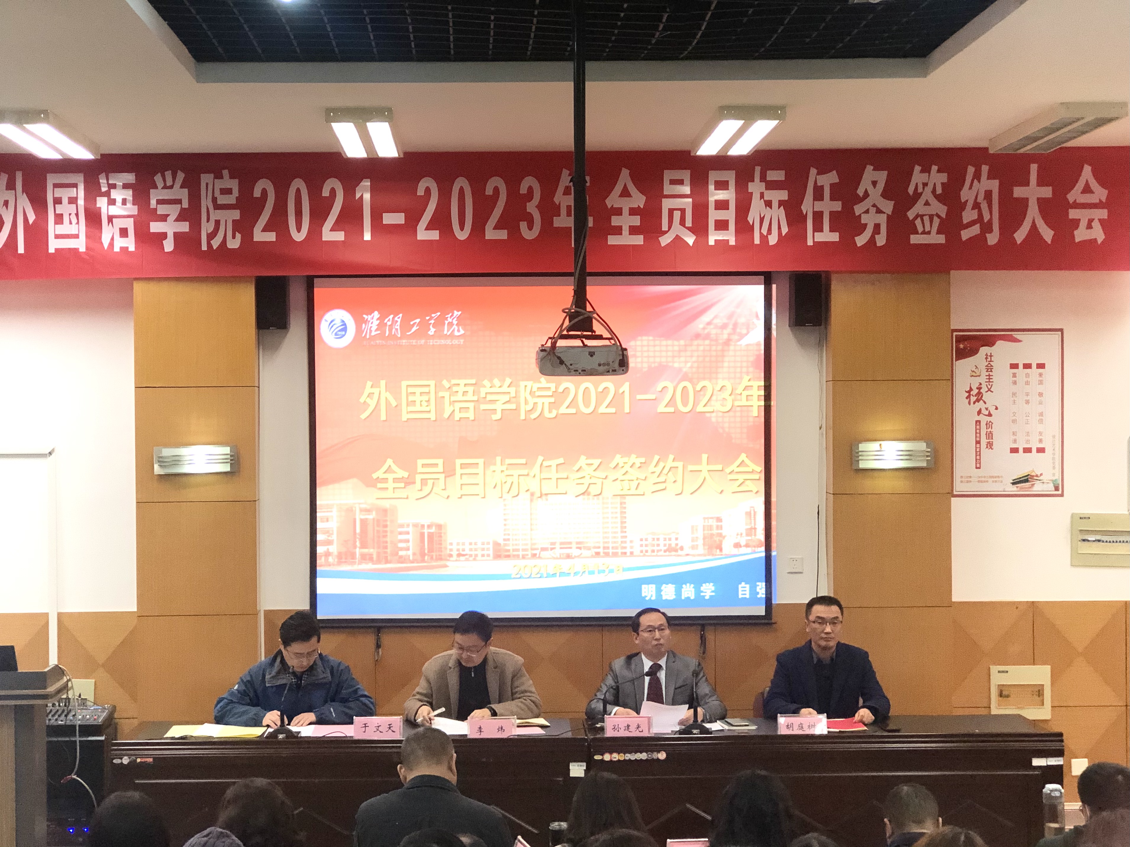 2021年是中国共产党成立100周年,是十四五规划开局之年,也是全面建设特色鲜明的高水平淮安大学新征程的开启之年。外国语学院党政全面按照学校2021年党政工作要点,按照抓内涵,提质量,强特色上水平的思路,2021年4月14日14:00品学楼二楼报告厅召开2021-2023年全员目标任务工作会议,此次会议的主要任务是签订全面从严治党责任书和2021-2023年全员目标任务书,外国语学院班子和全体教职工参加了本次会议。于文天副书记主持会议。