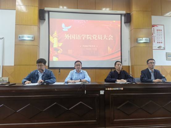 5月26日下午,外国语学院在学院二楼报告厅召开党员大会补选党委委员,学院全体师生党员参加大会,大会由学院党委副书记于文天主持。