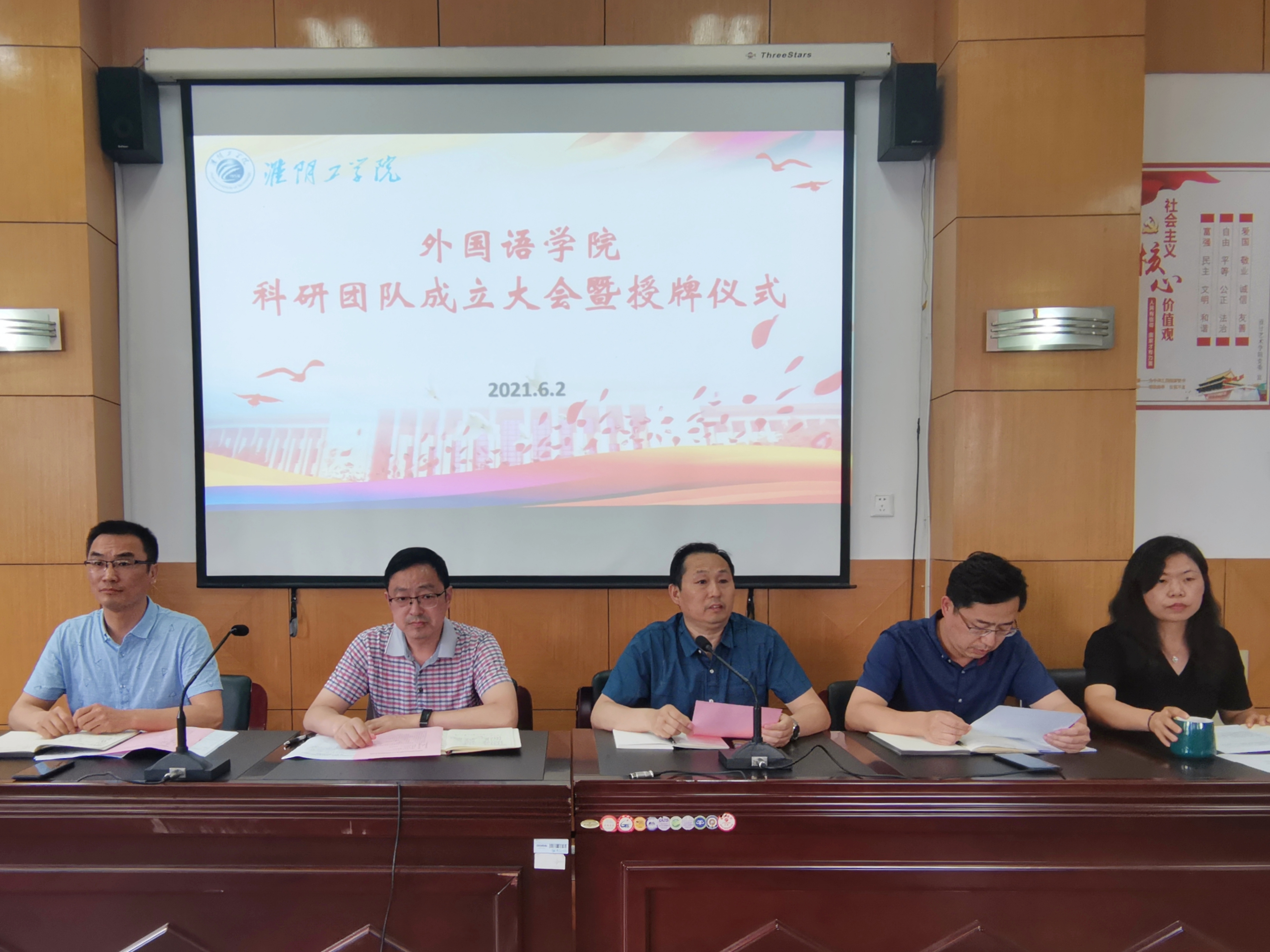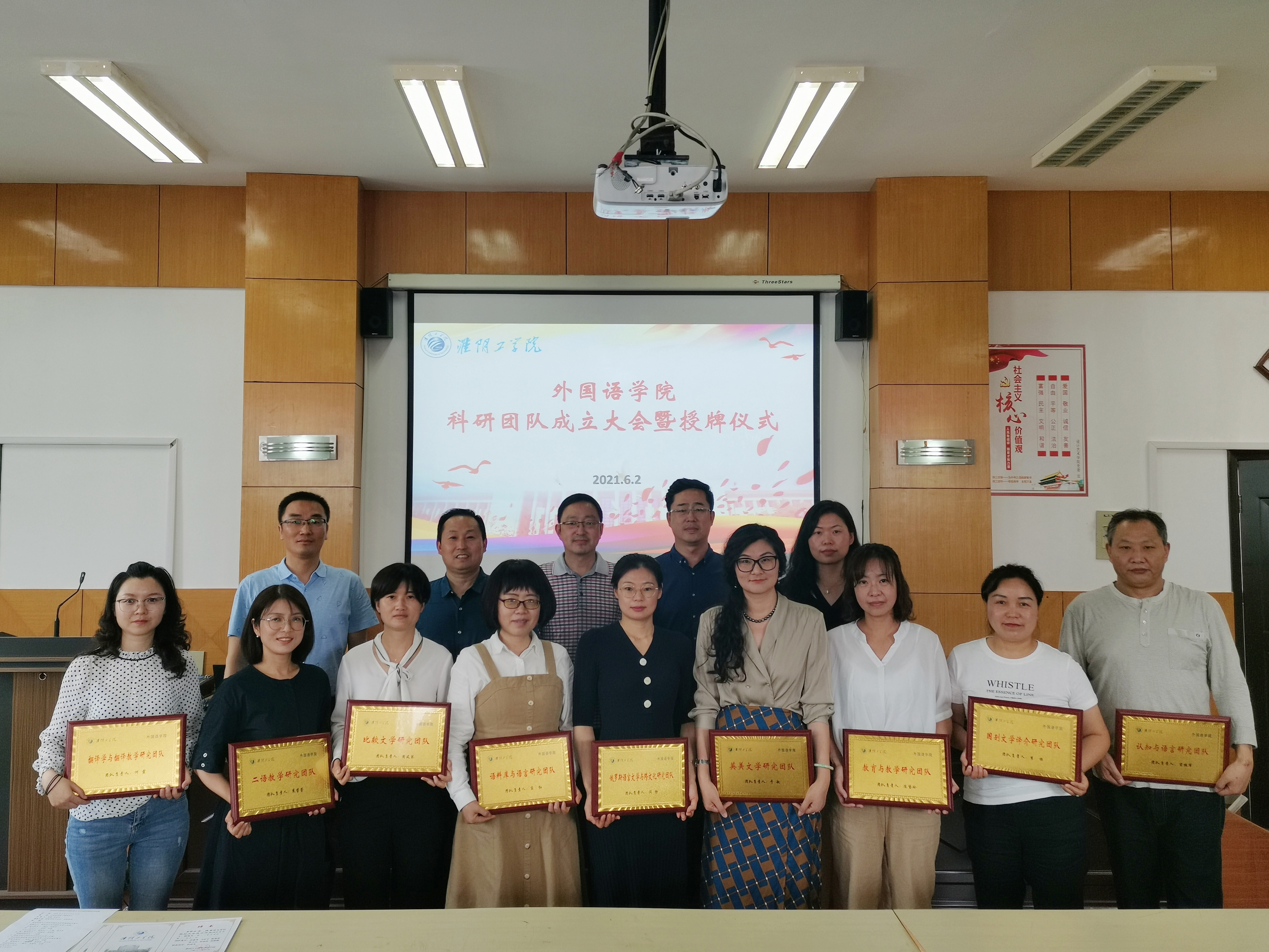 2021年6月2日下午,外国语学院科研团队成立大会暨授牌仪式会议在学院2楼报告厅顺利召开。会议由副院长郁敏主持,学院领导班子成员及全体教师参加了会议。