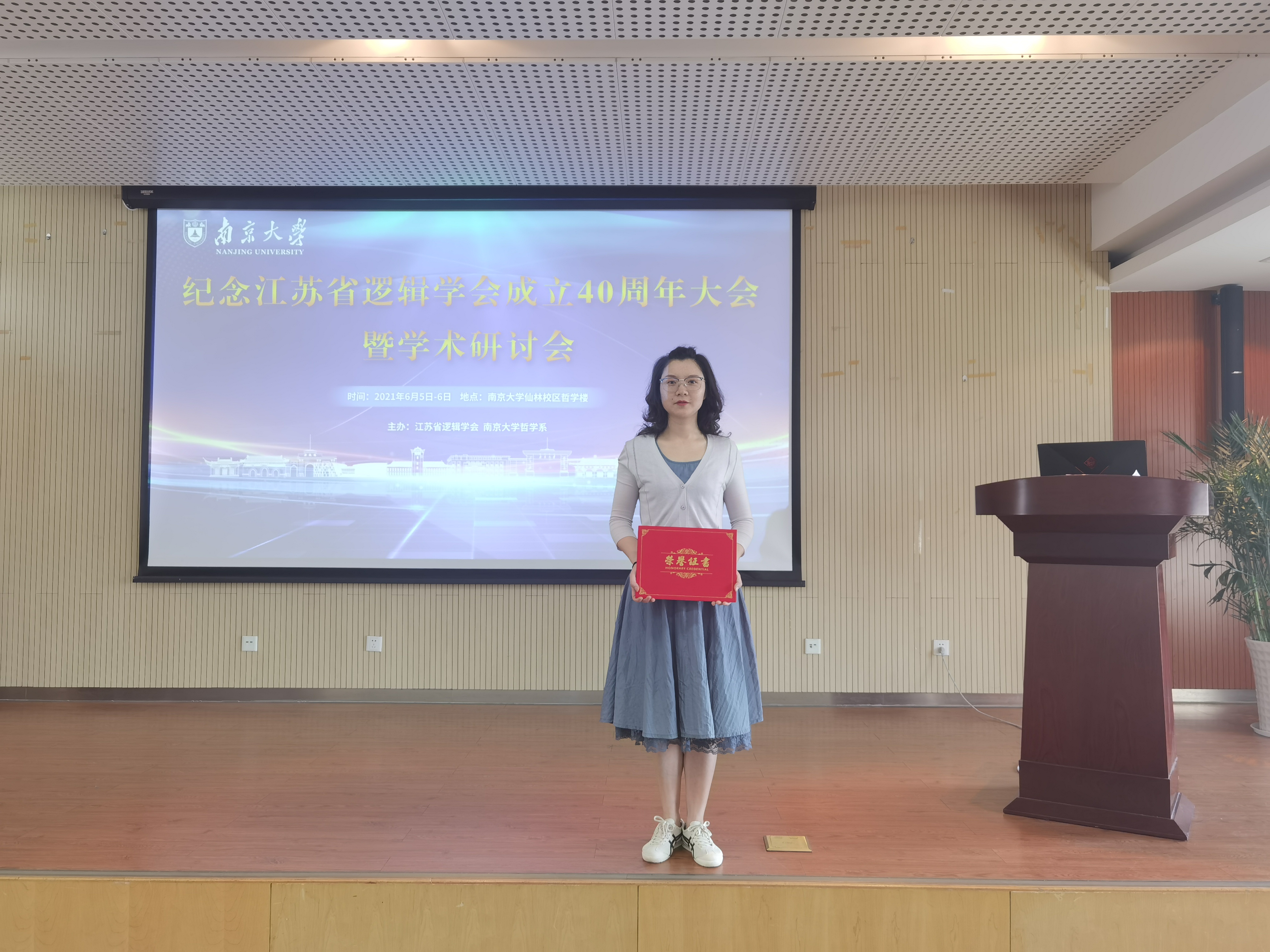 2021年6月5-6日,“纪念江苏省逻辑学会成立40周年大会暨学术研讨会”在南京大学仙林校区隆重召开。大会由江苏省逻辑学会和南京大学哲学系主办,南京大学现代逻辑与逻辑应用研究所承办。大会举行了“第五届江苏省逻辑与思维科学优秀成果奖(2015-2019)”颁奖典礼。本届优秀成果奖共评出特别荣誉奖11项,一等奖12项,二等奖25项,展示了省学会老中青会员近年来在逻辑理论与应用研究及逻辑普及工作中所获得的一系列重要成果。我校外国语学院教师何霞论文获得一等奖,胡庭树老师论文获得二等奖。