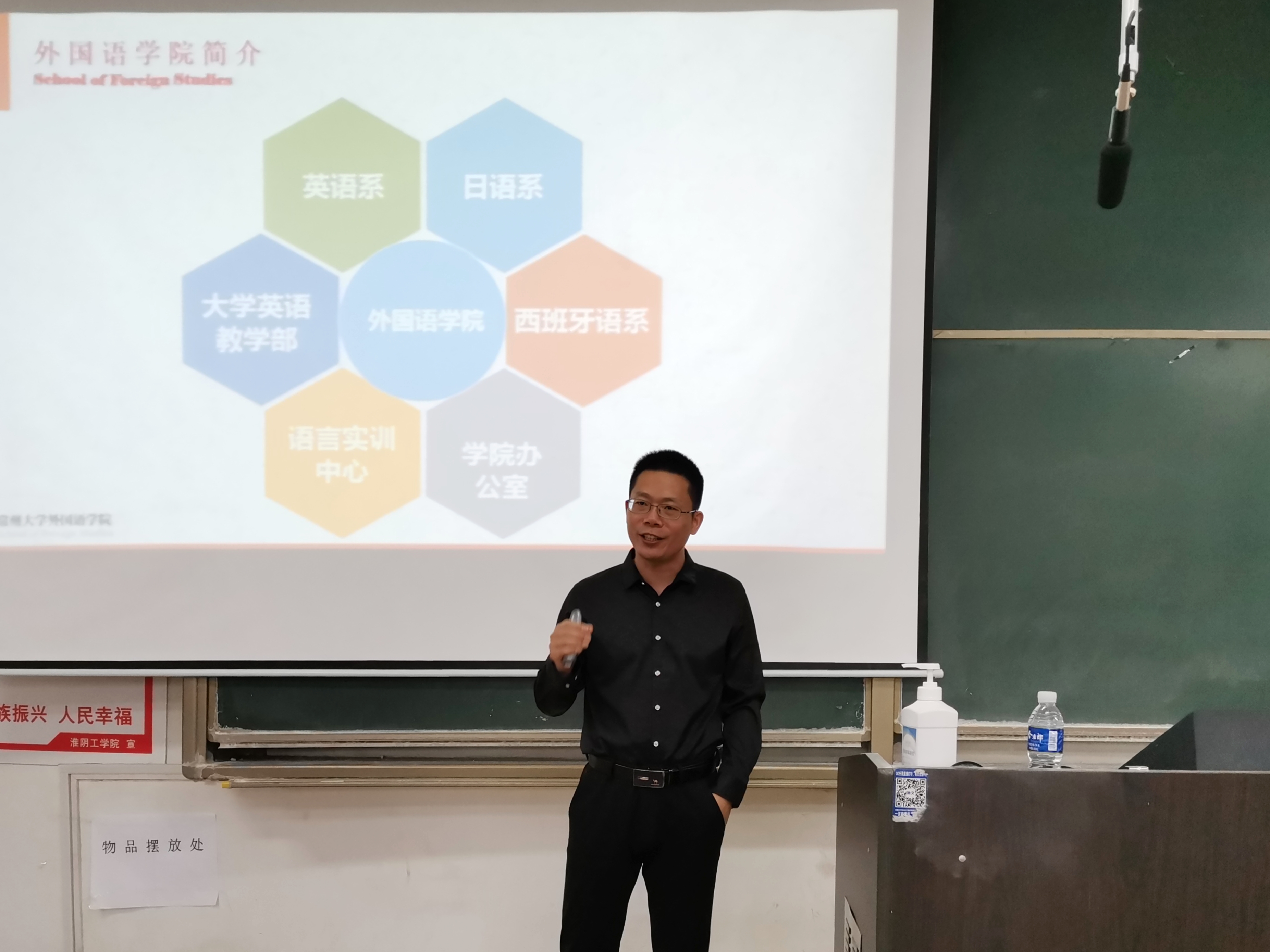 最后,徐多毅博士从外国语学院基本情况、师资队伍、人才培养、学院条件以及科研创新等方面介绍常州大学外国语学院的现状及优势,重点介绍了商务英语科研团队培养研究生的情况,随后他还一一回答了现场同学的问题,现场气氛热烈。