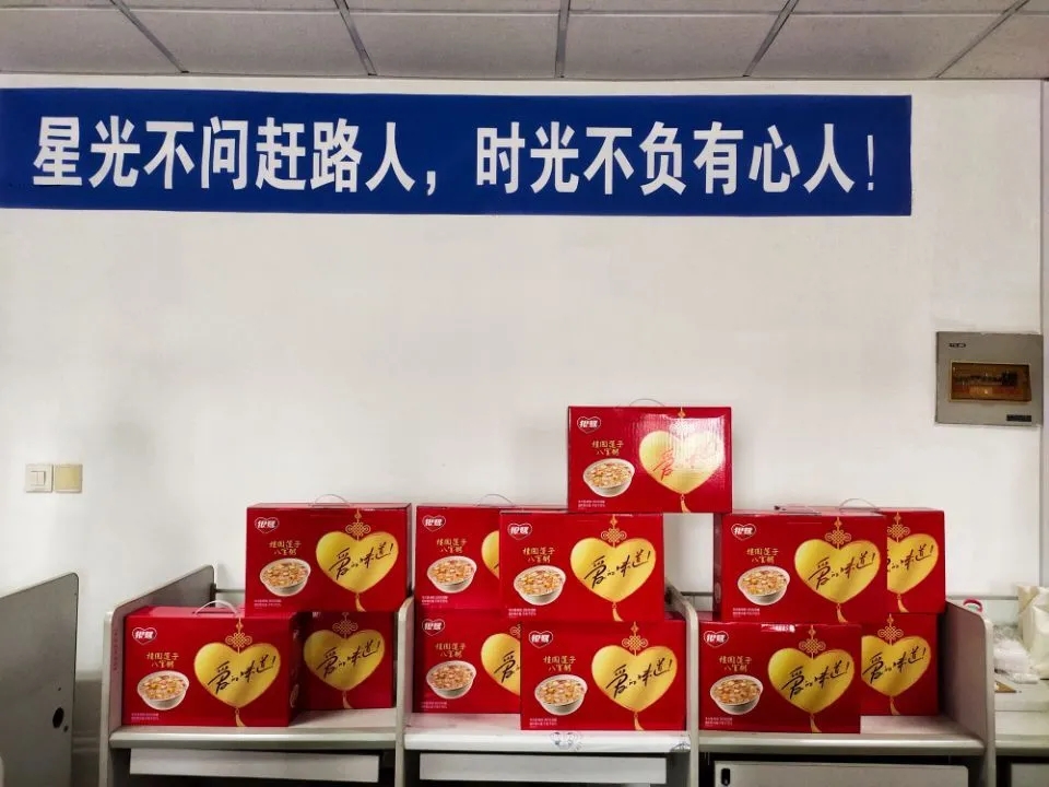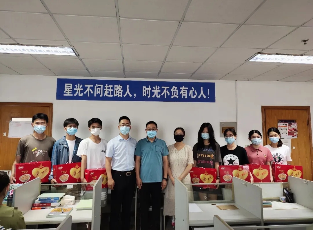 最后,老师们为考研学子送出夏日清凉慰问品,师生合影留念。至此,“夏日送清凉”主题活动圆满结束,本次活动送给同学们的不仅是一份份慰问品,更是对同学们的关怀与鼓励。正所谓“星光不负赶路人,时光不负有心人。”祝愿每一位考研学子都能砥砺前行,顺利通关!