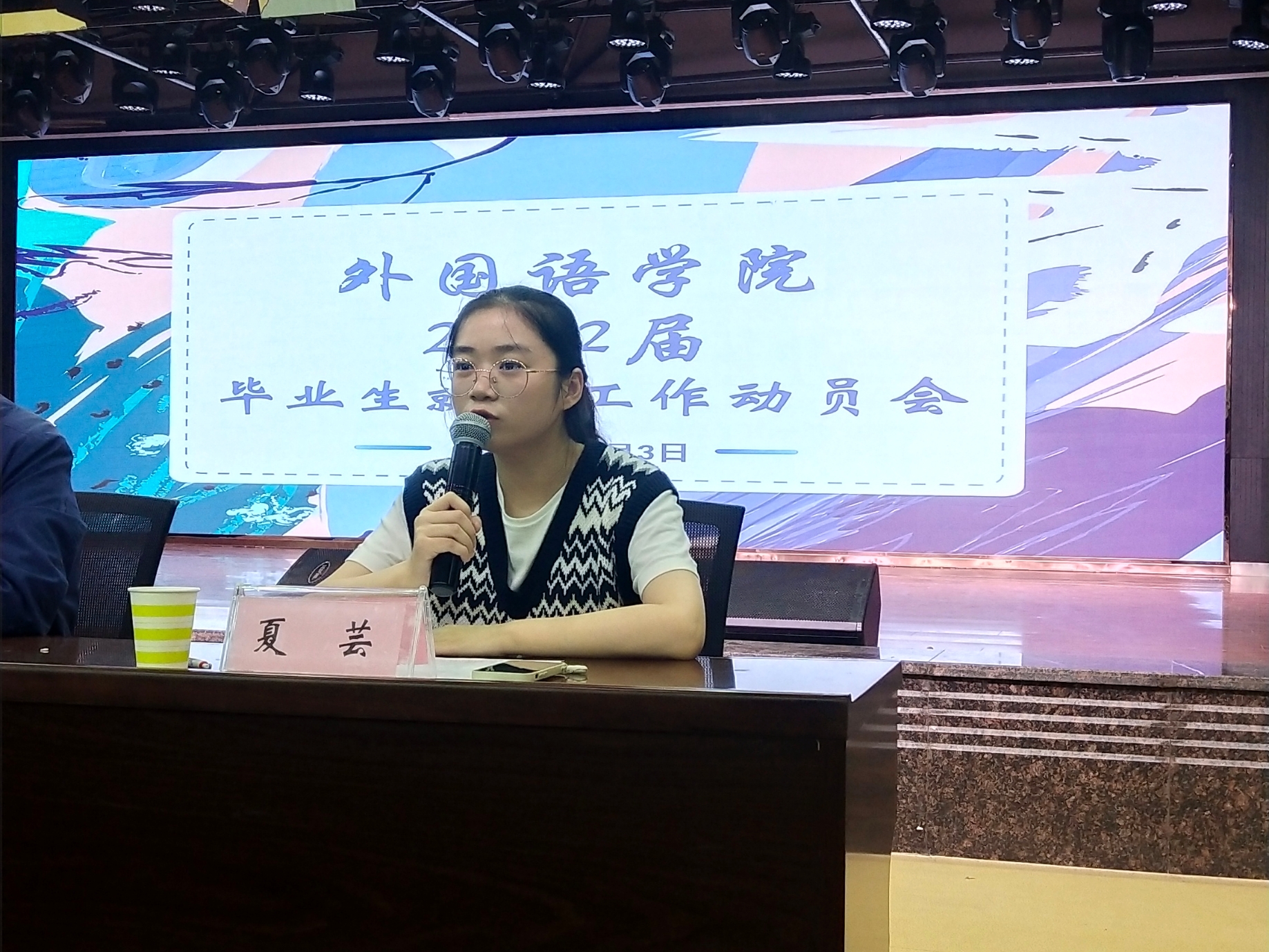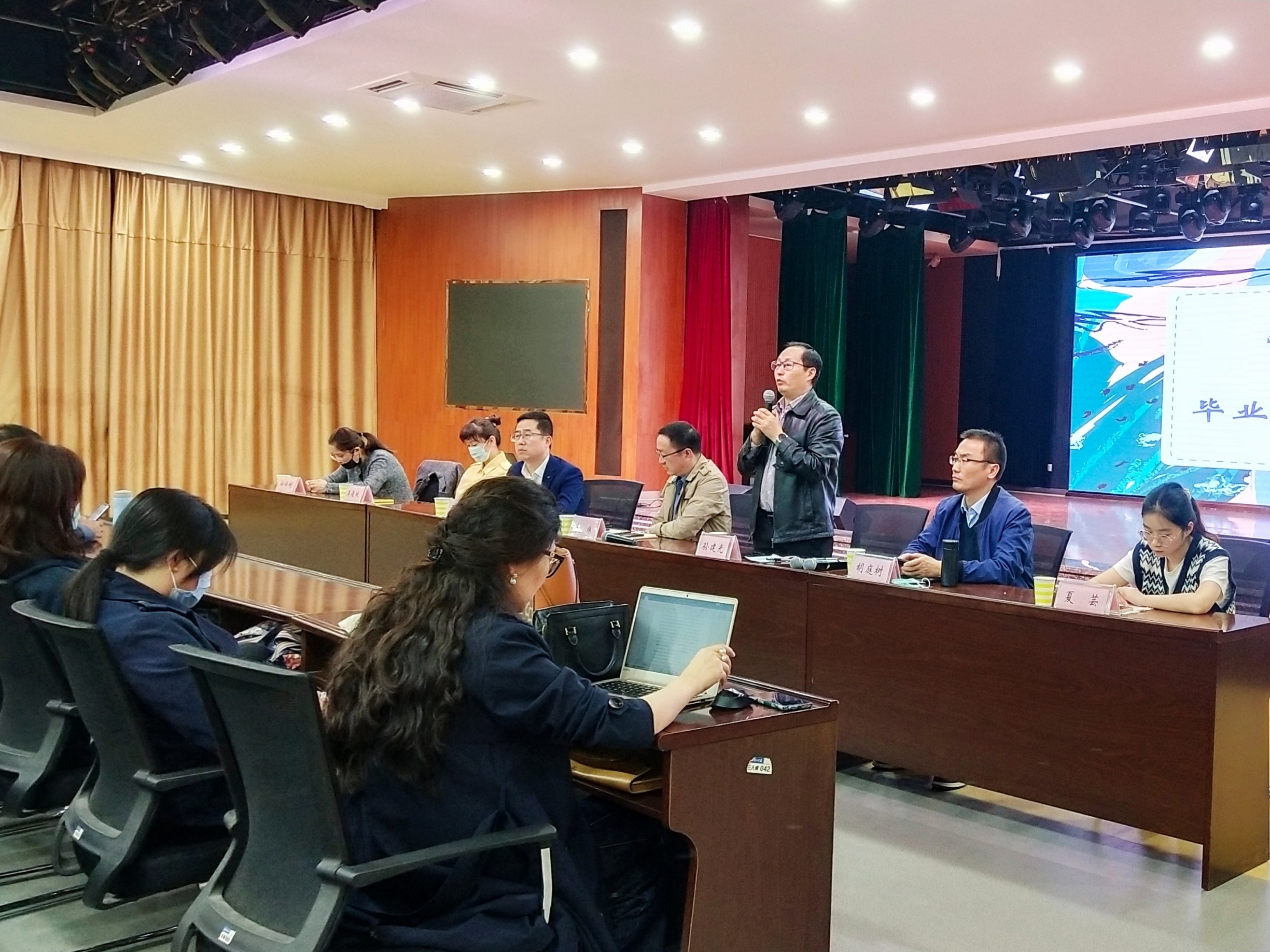 就业为民生之本。为更好地帮助应届毕业生了解就行形势与就业市场,2021年11月3日下午4:00,外国语学院于大学生活动中心举行外国语学院2022届毕业生就业工作动员会。外国语学院党委书记李炜,院长孙建光,党委副书记于文天,副院长胡庭树,吴俊秋老师,学工办主任孙伶俐,团委书记夏芸,毕业班班主任,全体论文指导老师以及2018级全体应届学生出席大会, 党委副书记于文天主持会议。