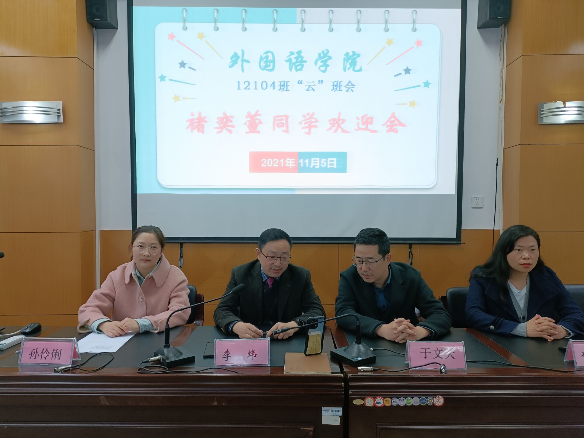党史学习教育开展以来,外国语学院各部门各单位以习近平新时代中国特色社会主义思想为指导,立足“速度、广度、温度、力度”,深入了解师生需求,加快项目推进实施,集中解决突出问题,师生的获得感、幸福感、安全感不断增强。11月5号下午14:30,外国语学院二楼举行了一场了特别的班会——2021级新生褚奕萱同学欢迎会。外国语学院党政领导、21级新生辅导员、12104班主任,还有12104班的全体同学们一起参加了这场负有特殊意义的云班会。