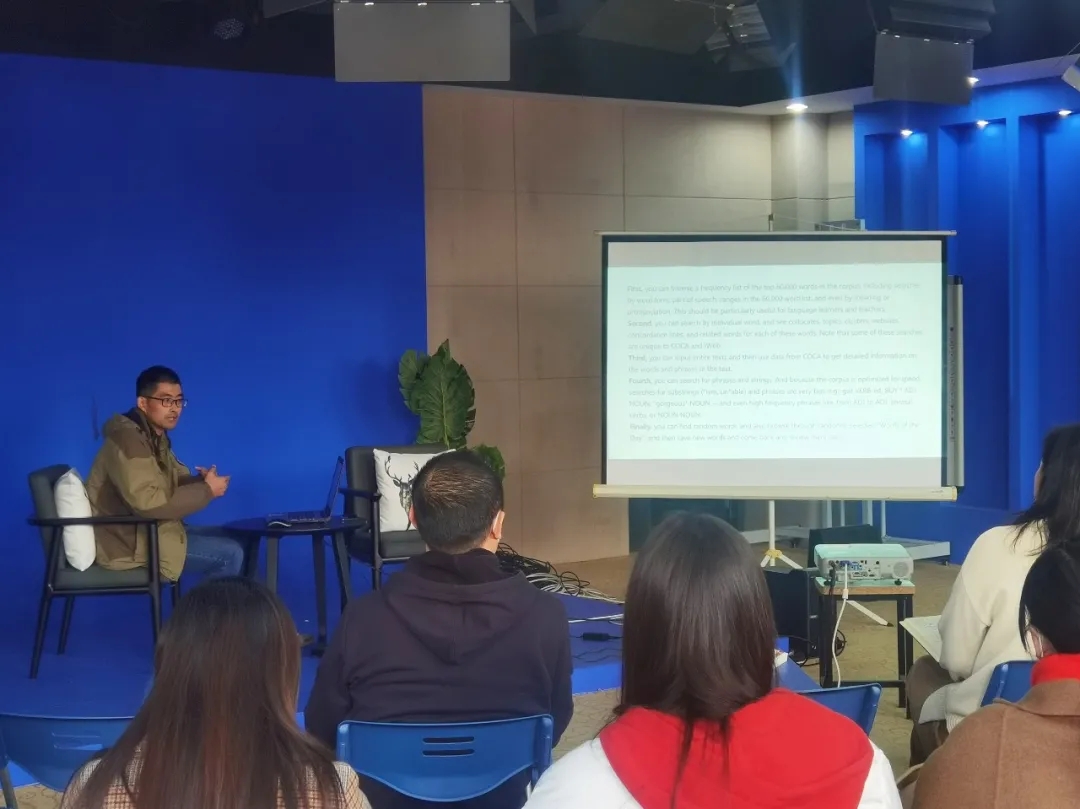 赵垒老师围绕《COCA语料库辅助外语教学》这一主题开讲。首先,赵垒为现场师生介绍了什么是COCA语料库。接着,他通过亲自实操,重点讲解了COCA语料库的正确使用方法。最后,他强调了语料库的重要性与实际用途,并结合日常教学运用展示了语料库的便捷性与实用性。自由讨论环节中,老师们纷纷表达出了自己的观点,并就自己的疑问向赵老师进行提问,赵垒老师一一做了解答。
