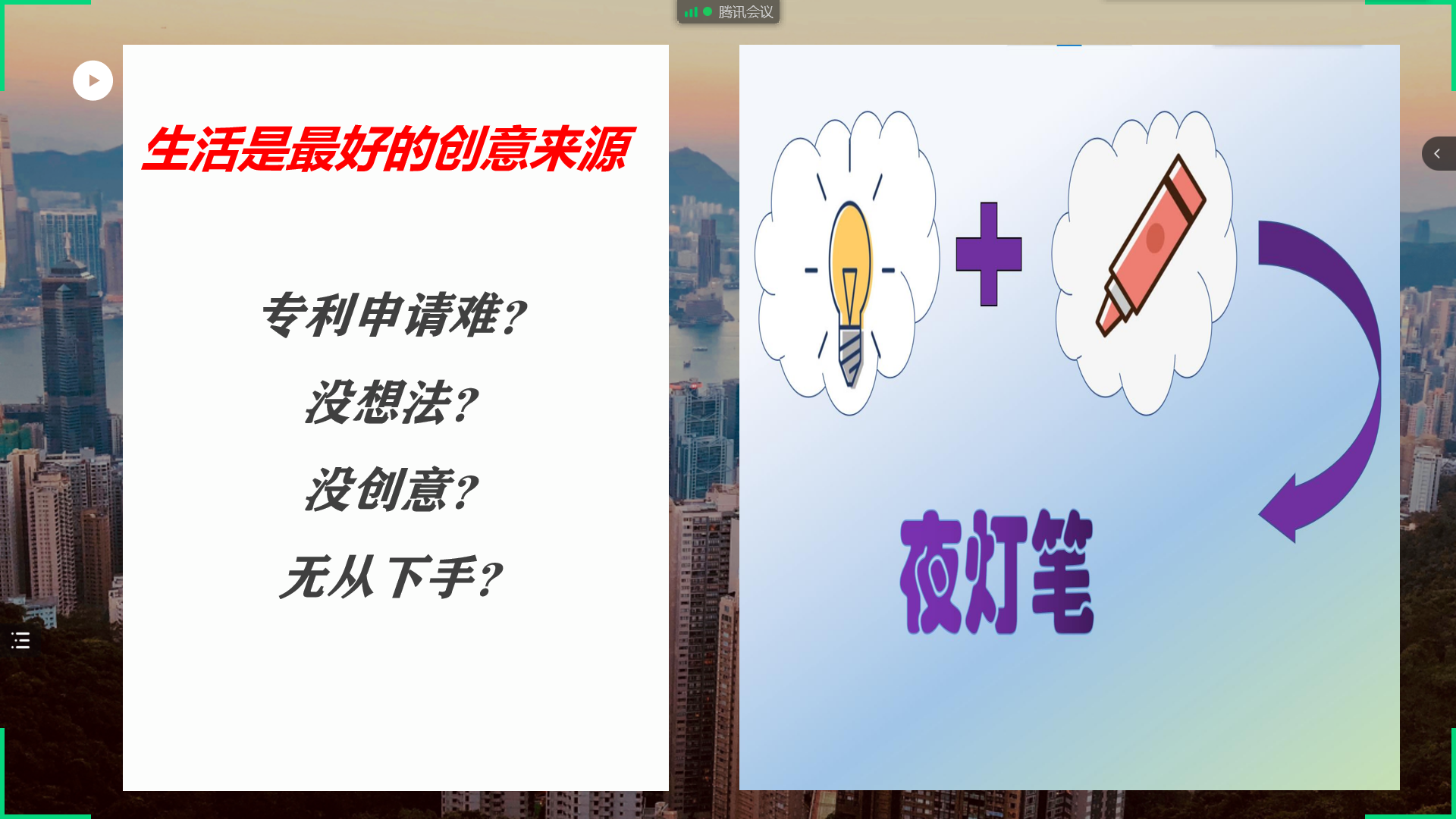 宣讲会最后,四组同学分别分享了个人专利成果,并给同学们提供了相关思路和建议:留心观察生活中的细节,及时记录灵感,发现生活中的不同点。