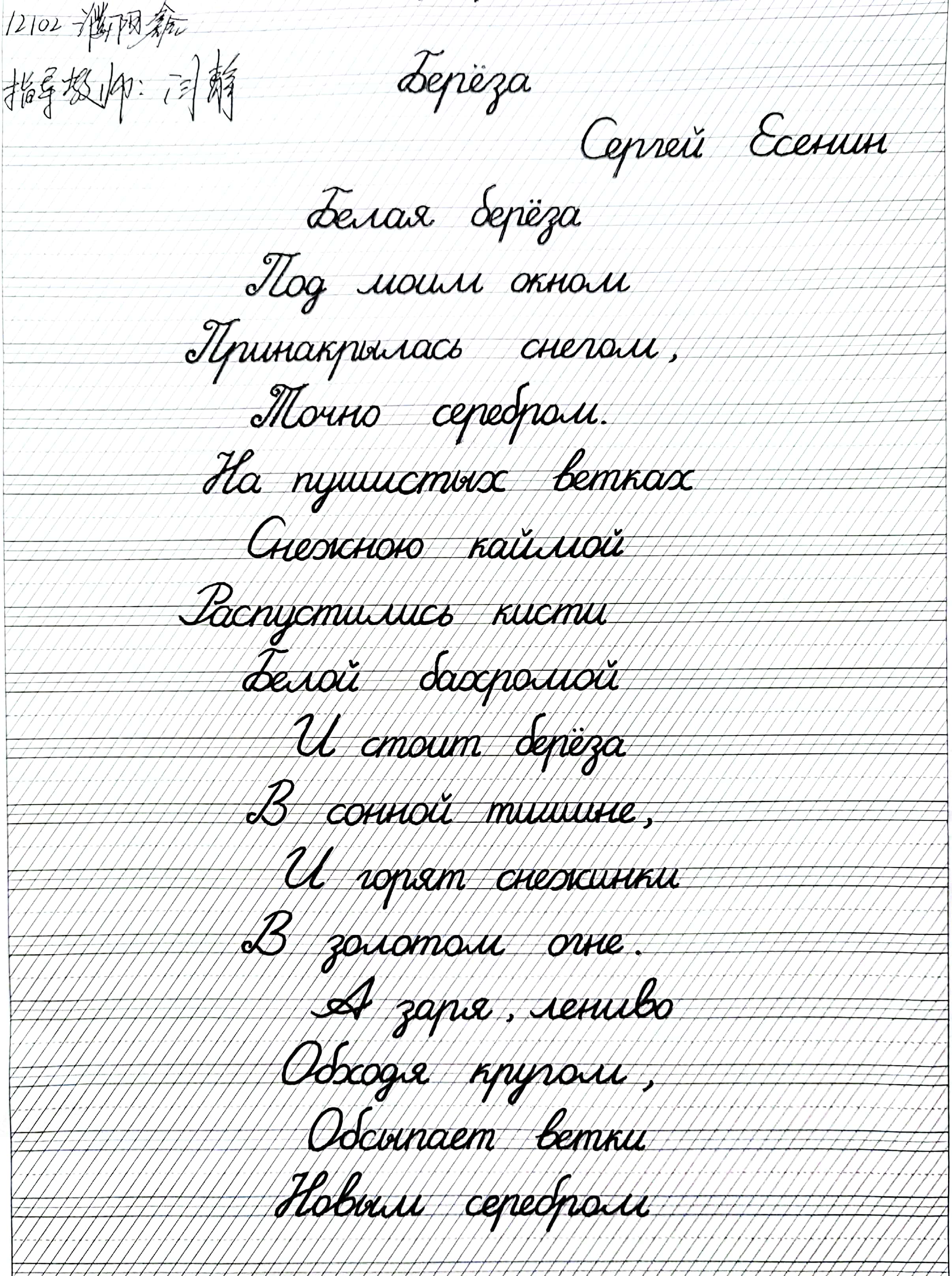 比赛中,同学们伏案疾书,认真仔细。一个个俄语字母在同学们笔下或严谨规整,或活泼灵动,每个单词在同学们笔下展现出不一样的魅力。同学们尽情挥毫泼墨,用作品展示了俄语字母的独特风格和俄语书写体的魅力。从他们的作品中,不仅可以看出同学们对俄语的浓厚兴趣,也让其他专业同学能够一睹俄罗斯秋天的美景。作品不仅承载着同学们对俄语学习的极大乐趣和期望,同时也丰富了他们对俄罗斯文化的认知维度。