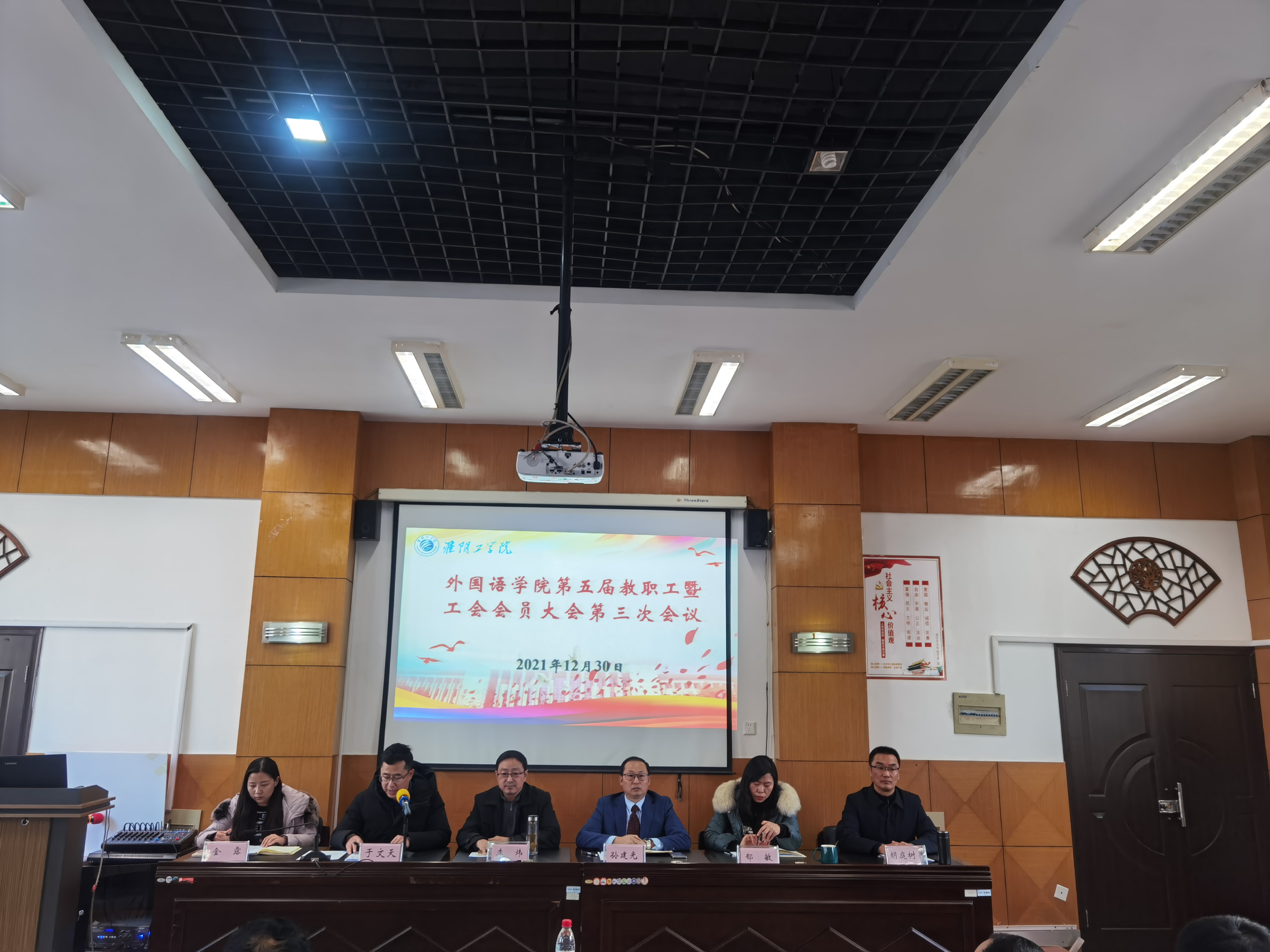 12月30日,外国语学院第五届教职工暨工会会员大会第三次会议在外国语学院二楼报告厅召开,学院党政领导、全体教职工参加了会议。大会由党委副书记于文天主持。