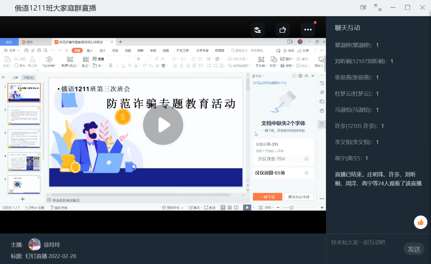 为了让同学们认识到诈骗的危害,外国语学院积极开展“防诈骗” 专题教育系列活动,学工办组织辅导员、班主任开展了线上与线下相结合的防诈骗主题班会进行普及与宣传。活动中,各班级组织线上防诈骗知识小课堂,让同学们近距离感同身受地去了解网络诈骗,时刻提醒同学们在日常生活中敲响防诈骗的警钟,处处留心隐藏在身边的诈骗“套路”。同学们还通过微信注册了警方推广的防诈骗神器“淮上反炸先锋”金钟罩和“淮安防骗宝”,它汇集了海量的电信诈骗数据,对注册人及其添加的家属实施精准护航,更加保障了同学们的财产安全。辅导员老师每次深入学生宿舍都与同学互相沟通,宣传反诈知识。
