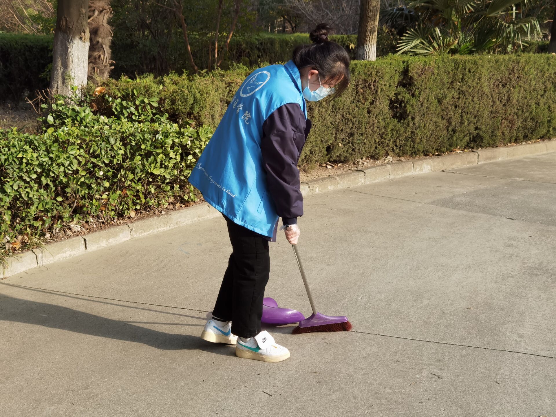 各位志愿者们拿起清洁工具,在校园里进行大扫除,积极、认真地打扫每一片区域。此次活动非常有意义,对志愿者而言,在如今的网课期间,离开封闭的宿舍,走出去劳动一番,既充实自己的生活,又丰富了自己的精神世界,同时锻炼了与队员沟通交流以及团结合作的能力,对校园里的同学和老师而言,干净整洁的校园环境,有利于更好地学习与工作。此前,志愿者部门已开展过多次实践活动,部门形成了一个氛围温馨的大家庭,队员们也都互相熟悉了解,成为称心的工作伙伴和朋友。