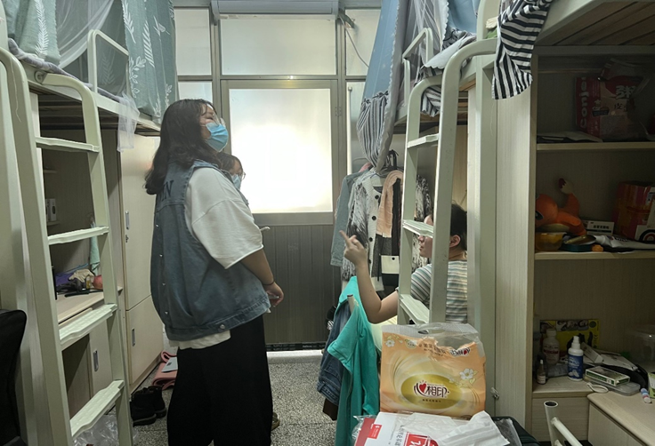 本次节前安全检查工作重点排查公共区域消防设施、楼道堆放等安全隐患,全面排查学生宿舍门窗安全、用水用电安全、使用违规电器等安全风险,确保安全检查工作落实落细。现场检查人员就卫生情况、用电安全等方面进行记录,形成问题整改清单,并在检查过程中提醒同学们放假务必离寝切断水电,时刻绷紧安全弦,共创平安校园。