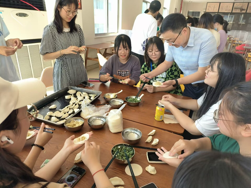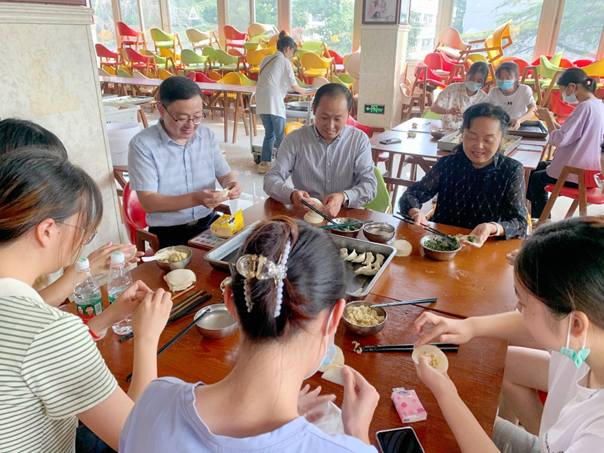 王冬冬与同学们一同包饺子,感受节日气氛。过程中,王冬冬表示,为了丰富同学们的课余生活,国庆期间学校准备了许多特色活动。同时她提醒学生们在娱乐之余要保持规律作息,加强体育锻炼,拥有健康好体魄。最后她鼓励在座的考研学生,调整好心态、相信自己、努力奋斗,心想事成。饺子里包住的不仅仅是美味的馅料,更是老师们的殷切祝福。