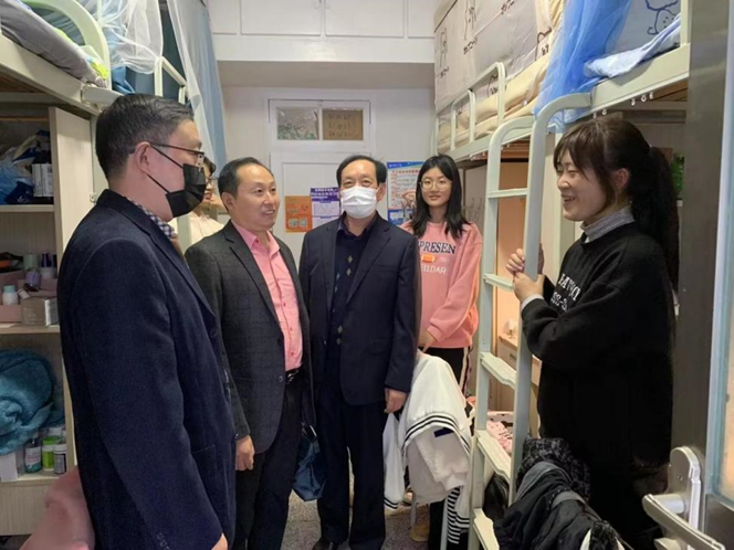 10月13日上午,外国语学院关工委常务副主任朱建新、党委书记李炜、院长孙建光深入走访2022级新生宿舍。