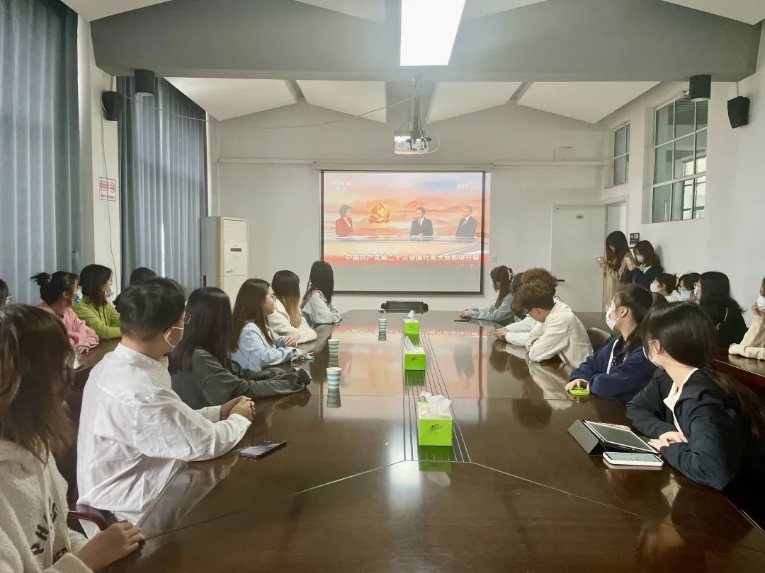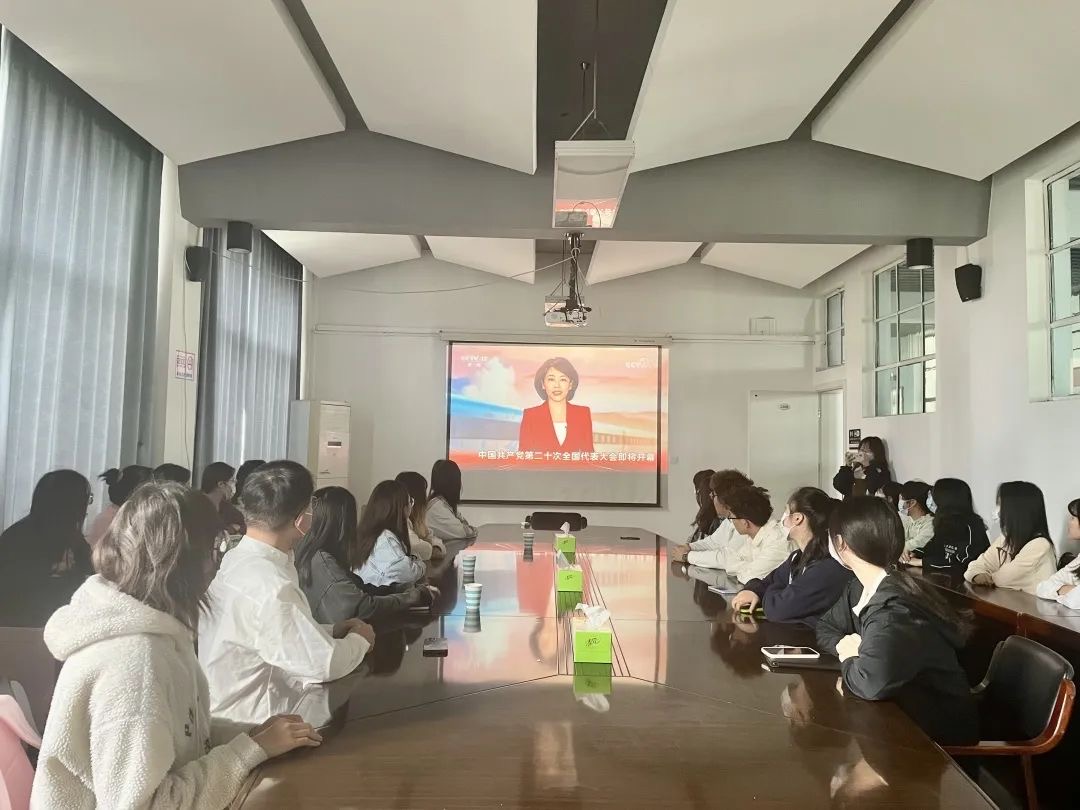 10月16日上午,外国语学院于品学楼2310集中观看中国共产党第二十次全国代表大会开幕会。35名团干部到达进行现场集中观看。