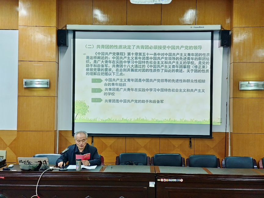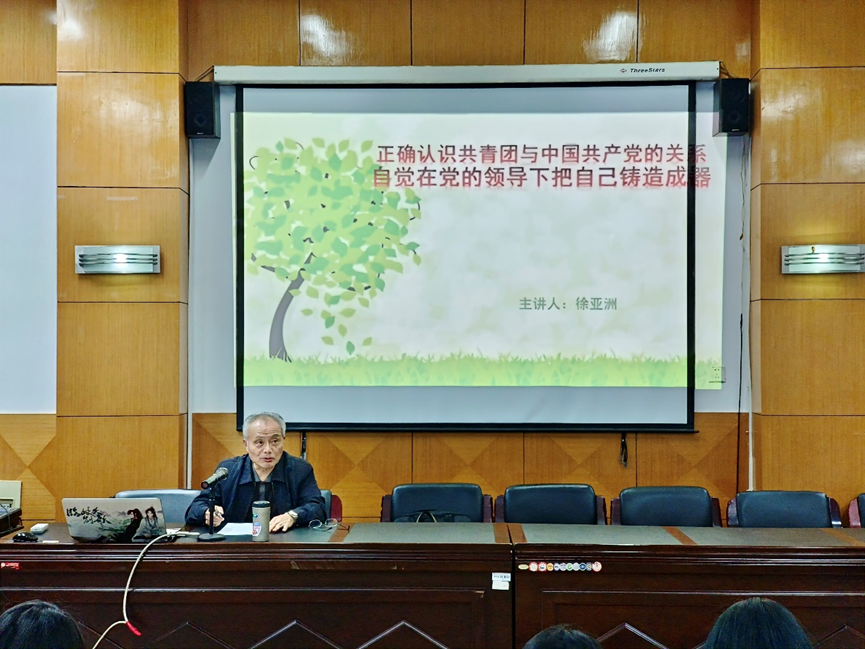 徐亚洲指出,共青团的历史就是在党的领导下创建、发展的历史,共青团的性质决定了共青团必须接受中国共产党的领导。并强调,牢牢坚持党对共青团的绝对领导,是共青团必须坚持的正确政治方向,是做好青年工作的基础与前提。最后呼吁大家树立远大理想,坚持勤奋学习,注重品德修养,始终艰苦奋斗。