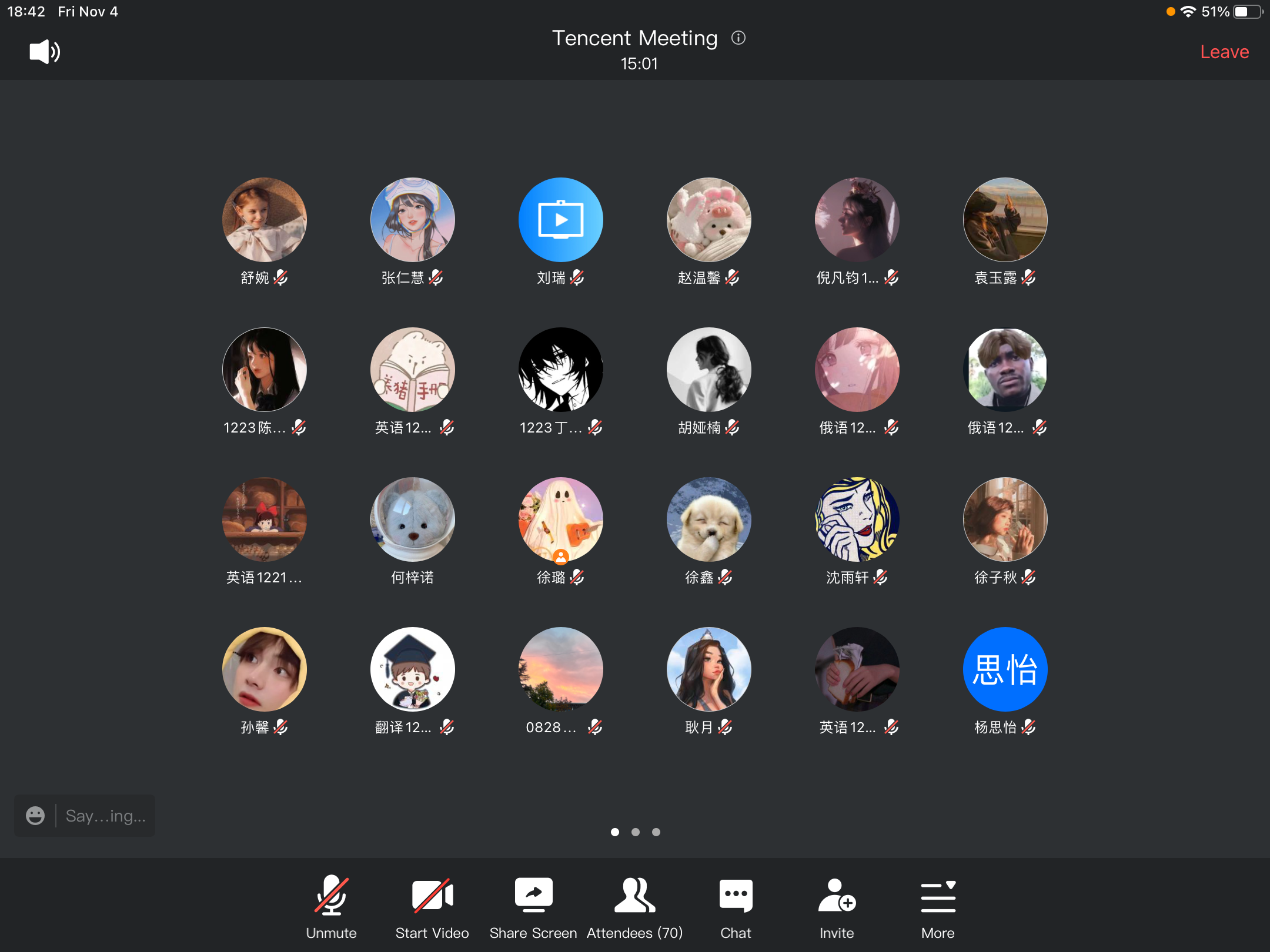 11月4日晚上,外国语学院于线上开展主题为“青春心向党 筑梦新时代”的青马工程培训,外国语学院团委副书记朱胜男担任主讲人,各年级优秀团员参加本次课程。