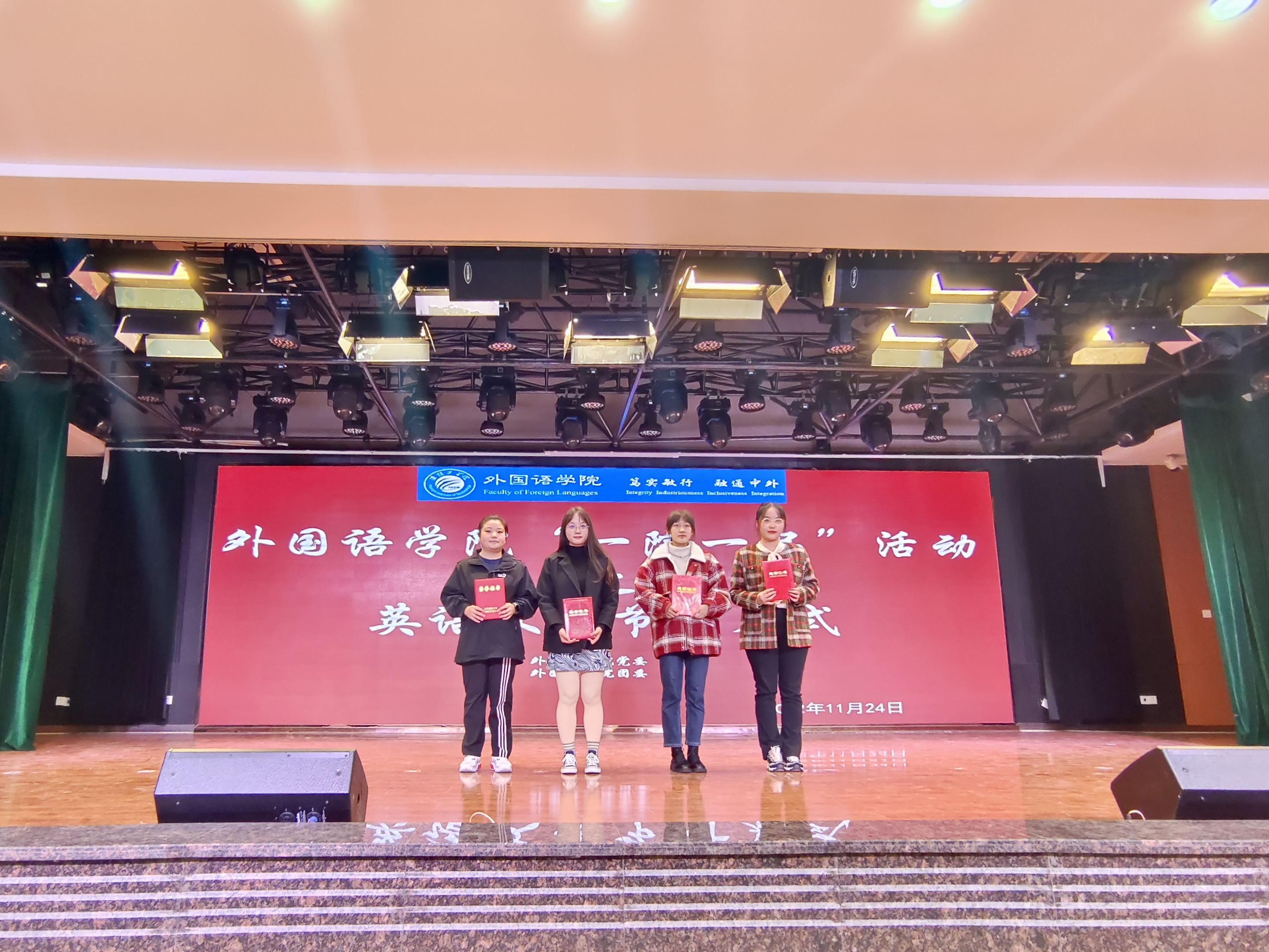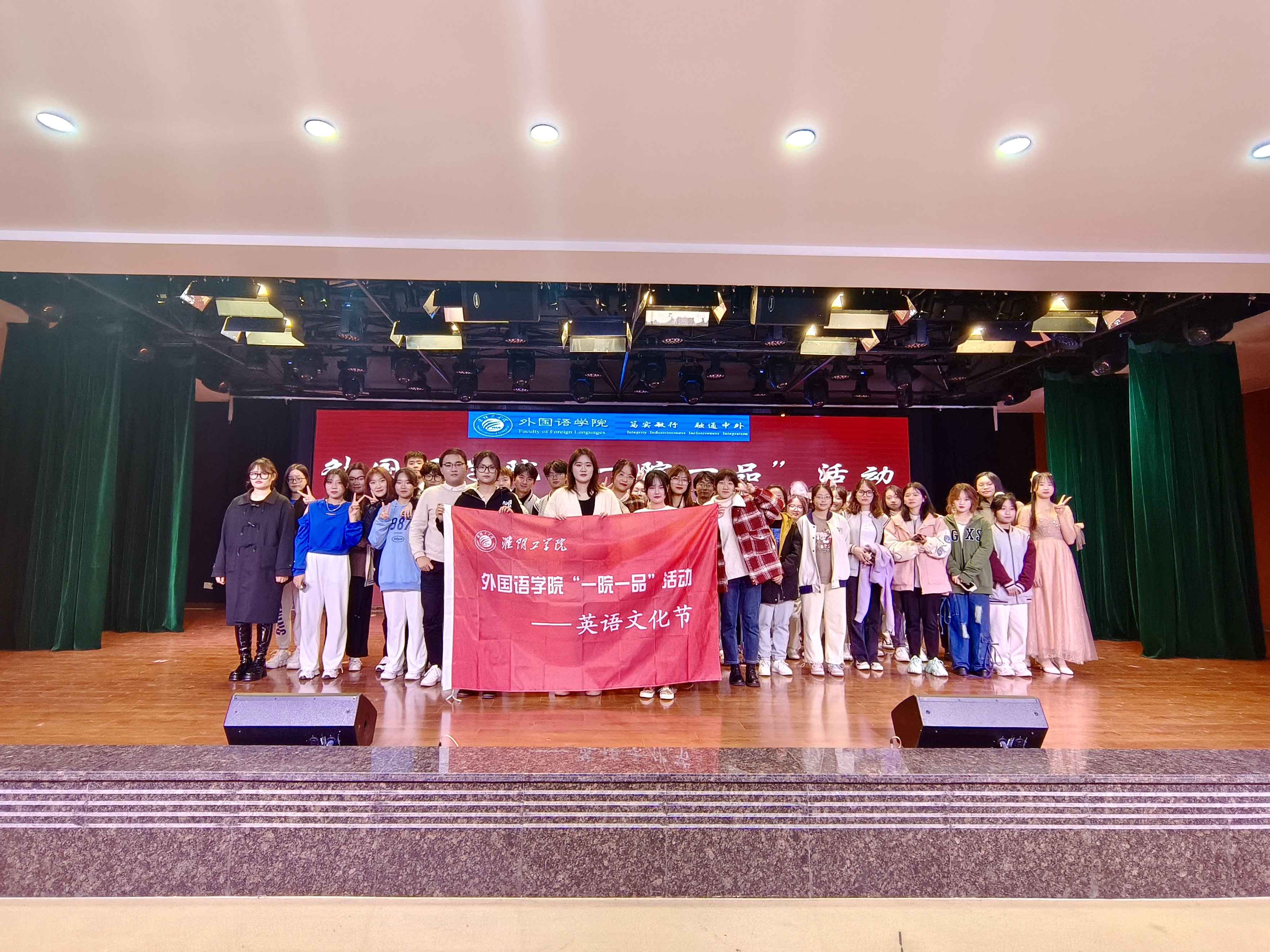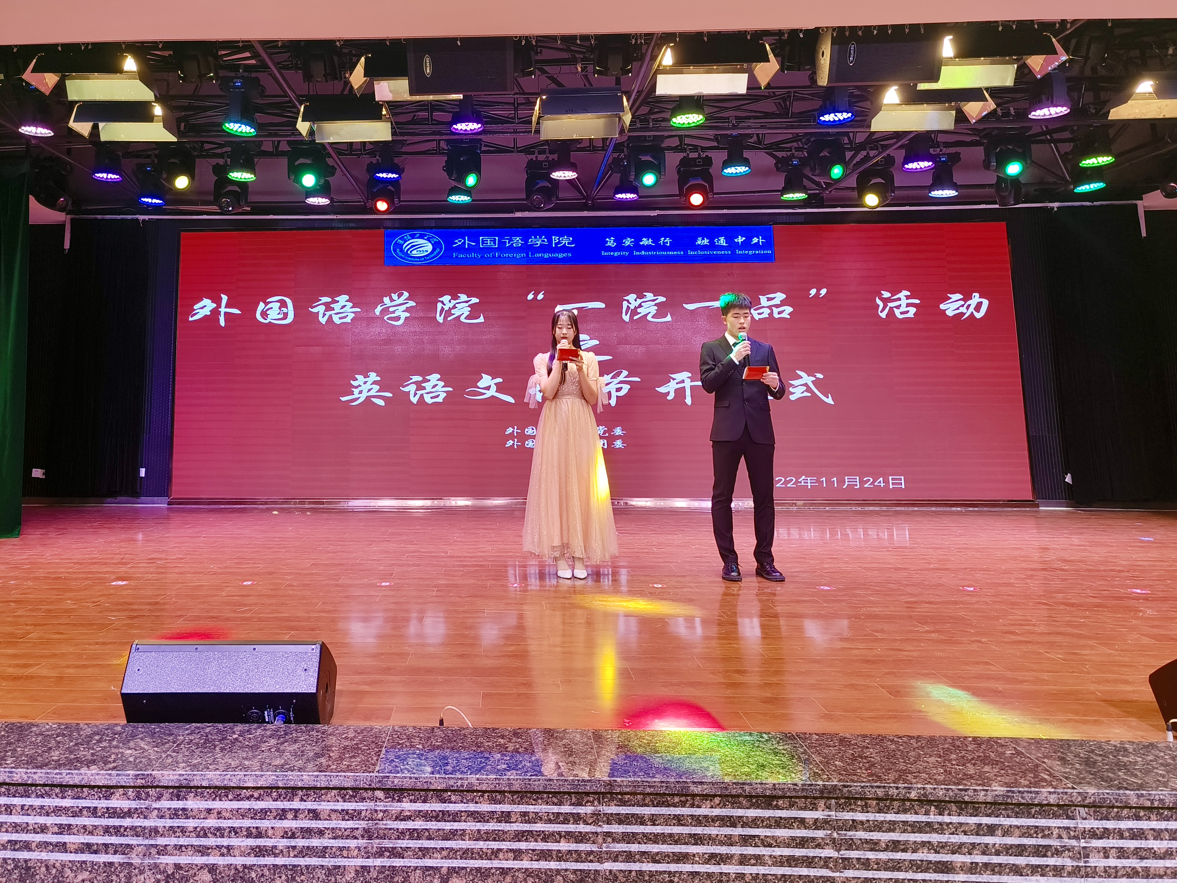 为进一步加强学院重点学风建设,11月24日晚,外国语学院于大学生活动中心四楼演播厅开展了“一院一品”——英语文化节活动。外国语学院党委副书记、副院长祖维、党务秘书夏雁军、学工办主任孙伶俐、团委副书记朱胜男出席活动。孙名扬、王欢悦担任主持人,外国语学院部分同学参加。