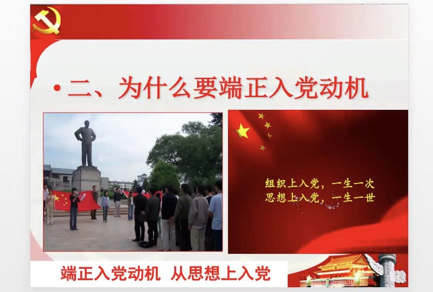 会议伊始,关向峰就“在疫情期间如何发挥党员的先锋模范作用”这一问题,与各位入党积极分子进行充分的探讨与交流。接着,他以江苏省优秀大学生村官孙建为例展开话题,引导大家向优秀学子看齐,并指出,作为入党积极分子,要严于律己,知行合一,凡事冲在第一线,充分发挥党员的先锋模范作用。最后,关向峰再次强调要端正入党动机,从思想上入党,以实际行动向党组织靠拢。