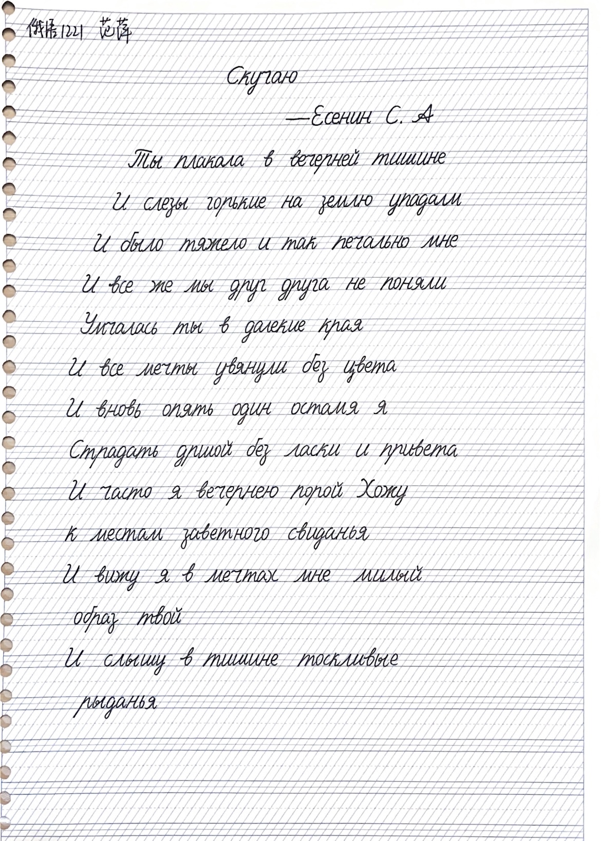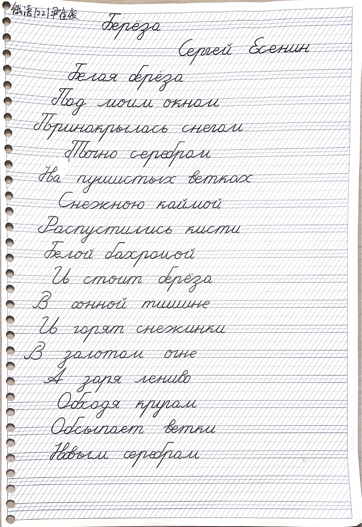 获奖作品书法功底扎实、卷面工整,充分体现了俄语大一新生的核心素养和综合素质。经过评审后,现将获奖名单公布如下: