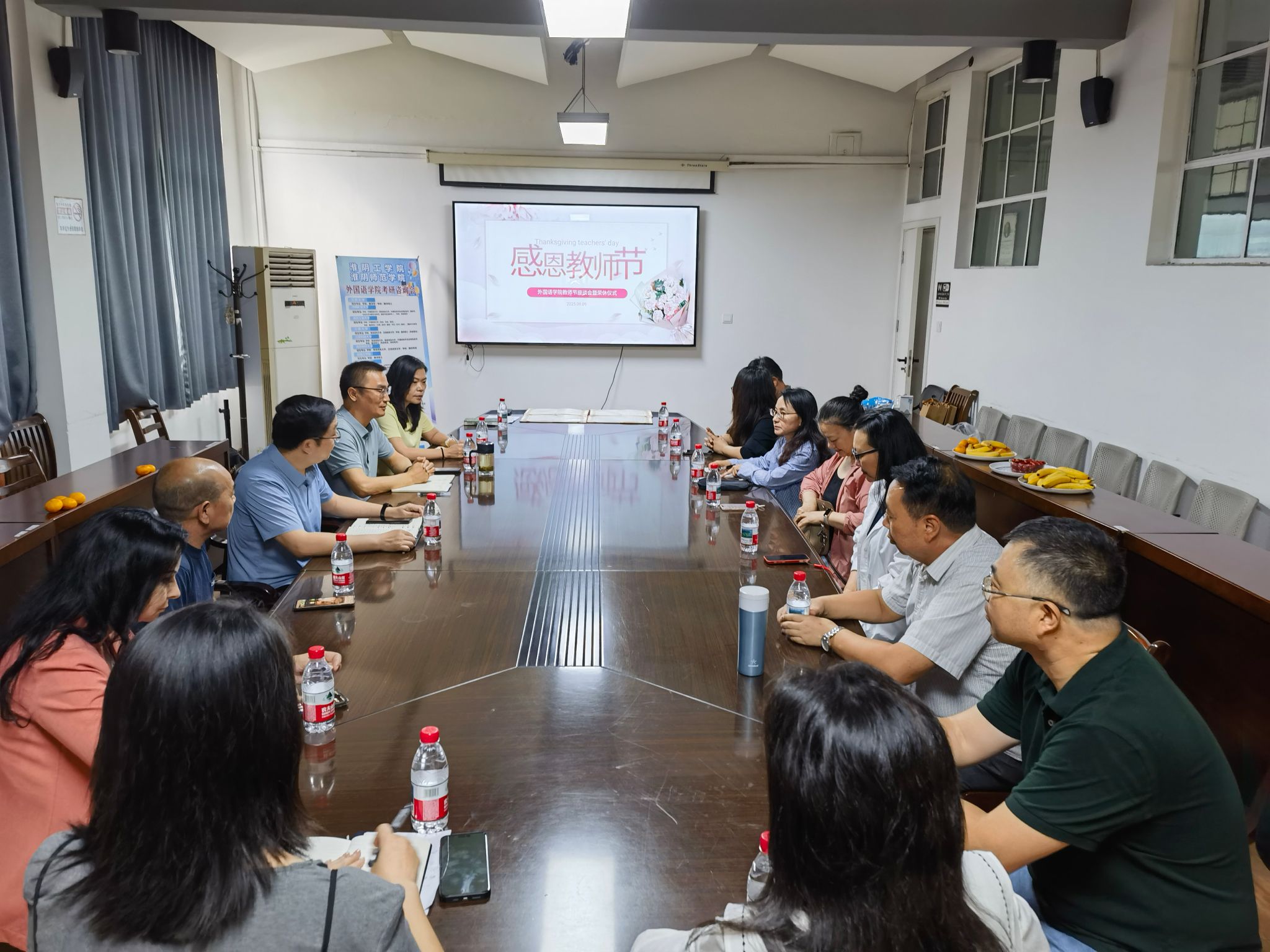 金秋送爽,师恩如光。在第41个教师节来临之际,为弘扬尊师重教的优良传统,9月9日上午,外国语学院在2301会议室举行了以“致敬师者,传承匠心”为主题的教师节座谈会暨荣休仪式。学院领导、2024年度的荣休教师、在职教师代表及新入职青年教师齐聚一堂,共庆佳节,畅谈育人初心,共话学科未来。