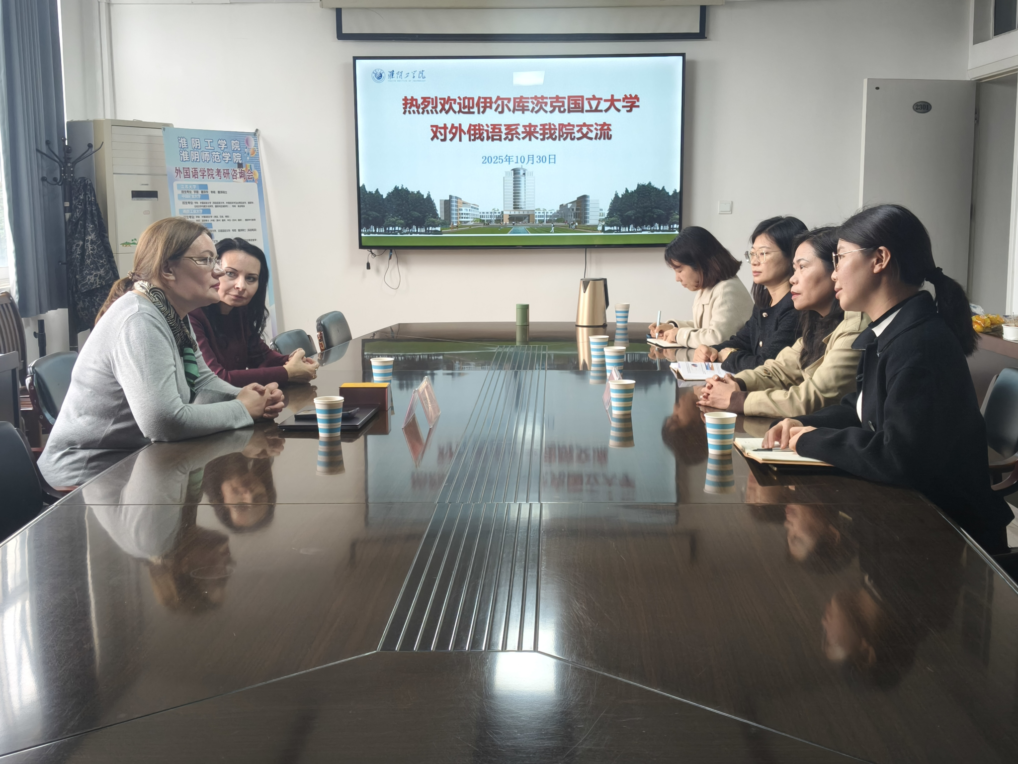 交流伊始,郁敏副院长对Юлия Александровна副主任的到访表示热烈欢迎,她简要介绍了外国语学院的学科布局,重点提及多语种专业协同发展特色,以及俄语专业在课程建设、师资团队、学生竞赛等方面的成果;同时分享了学院国际化人才培养规划,包括涉外实践平台搭建、海外合作渠道拓展等方向,为双方精准对接合作需求奠定基础。