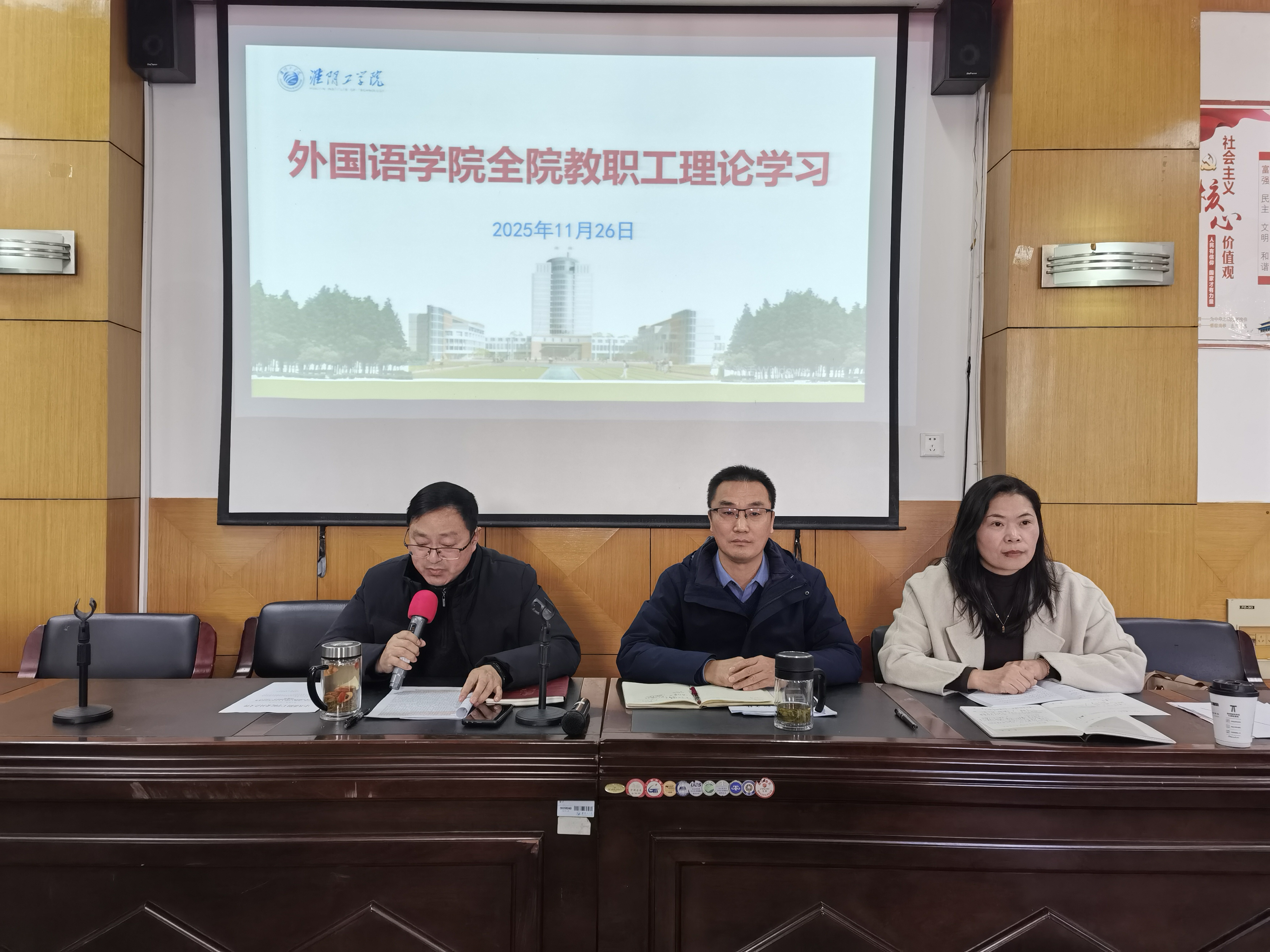 11月26日,外国语学院在品学楼2210报告厅召开全院教职工学习会,集中学习中国共产党第二十届中央委员会第四次全体会议公报精神。会议由外国语学院党委书记李炜主持,全体教职工参加了此次会议。