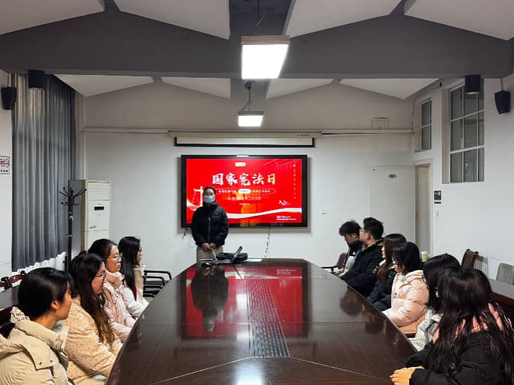 2025年12月4日,外国语学院第五党支部于品学楼2301教室开展第十二个国家宪法日专题党课活动。第五党支部书记朱胜男主持活动,外国语学院第五党支部全体党员参加了此次活动。