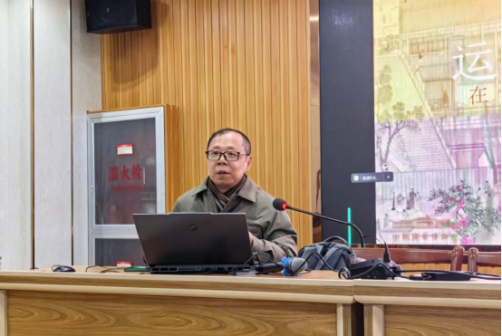 于文龙首先讲述了大运河的国家战略定位,指出核心要求:聚焦“保护好、传承好、利用好”。他以淮安、扬州、苏州、杭州“运河四大都市”为案例展开解读,并系统剖析大运河对中国城市格局与生活方式的深远塑造,为大运河文化带的保护、传承与利用提供了具象化认知与实践参考。他将传统人居板块细化为城市、街巷、建筑、景观四大维度。指出四大维度各有特色而又互有联系,生动诠释了传统人居与自然、文化的共生关系。还通过漕神、漕船等文化符号讲述了运河文化的活态传承,展现大运河对民俗习惯与精神信仰的塑造作用。