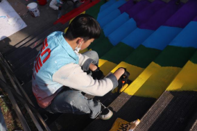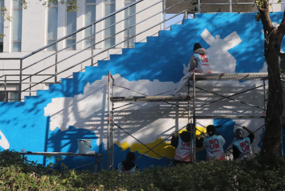 在创意设计下,同学们动手为建筑物加入了艺术色彩,实现从“构想者”到“实践者”的蜕变,也营造出丰富多样的校园环境氛围。