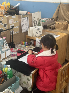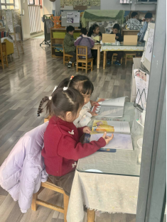 美工区里,彩纸、黏土、画笔成为孩子们的“魔法工具”,他们发挥天马行空的想象力,创作着花朵、小动物等充满童趣的作品,脸上满是认真与专注;益智区中,孩子们围坐在一起,专注地摆弄拼图、串珠子、数字配对教具,在游戏中锻炼逻辑思维与动手能力;绘本阅读区则格外安静,部分孩子自主挑选喜爱的绘本,或独自翻阅,或围在老师身边倾听故事,眼神中满是对世界的好奇与向往。
