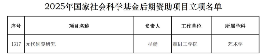 12月23日,2025年国家社会科学基金后期资助暨优秀博士学位论文出版、优秀学术著作再版项目立项结果公布。我院程渤教授申报的《元代碑刻研究》成功获批。这是程渤教授第三次获批国家社会科学基金后期资助。