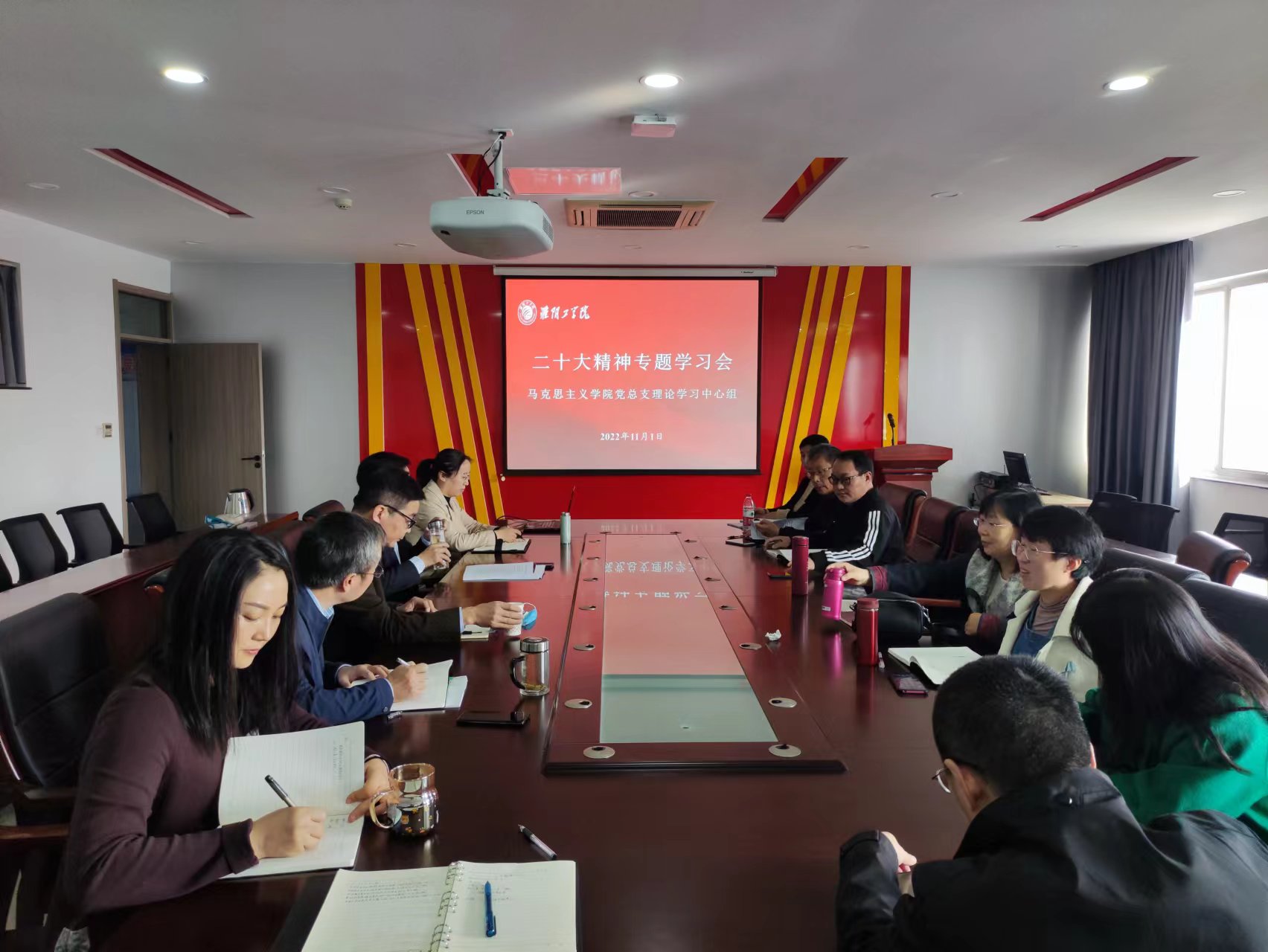 2022年11月1日下午,马克思主义学院党总支组织党的二十大精神专题学习会。学习会由党总支书记施坚主持,学院理论学习中心组全体人员参加学习会,党委常委、组织部部长秦家沛巡学旁听。