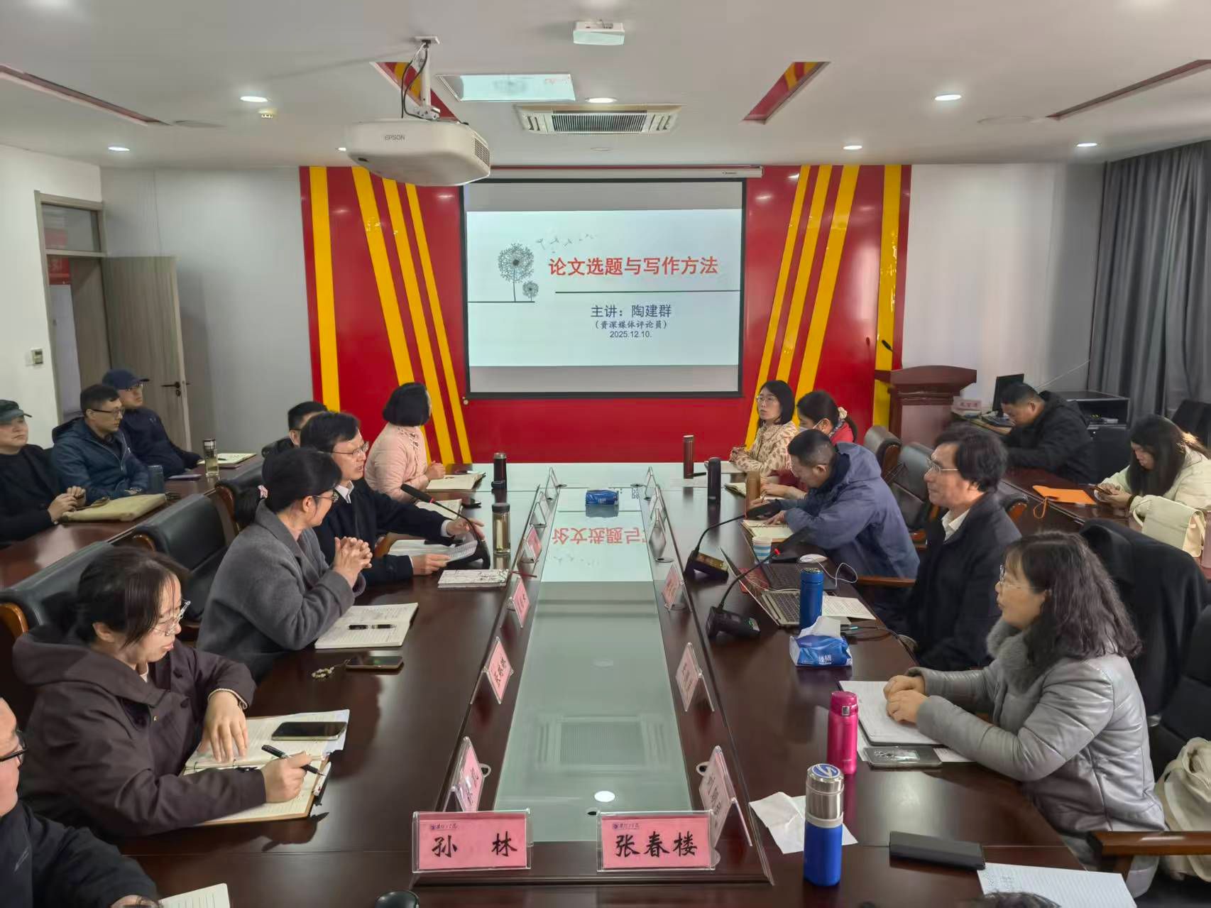 2025年12月10日上午,淮阴工学院马克思主义学院“信仰讲坛”第14期在逸夫楼910会议室开讲。本期论坛特邀人民日报社人民论坛首席研究员陶建群担任主讲嘉宾,作题为《论文选题与写作方法》的专题报告。报告会由马克思主义学院施坚院长主持,翟明女书记出席,学院全体教师参会学习。