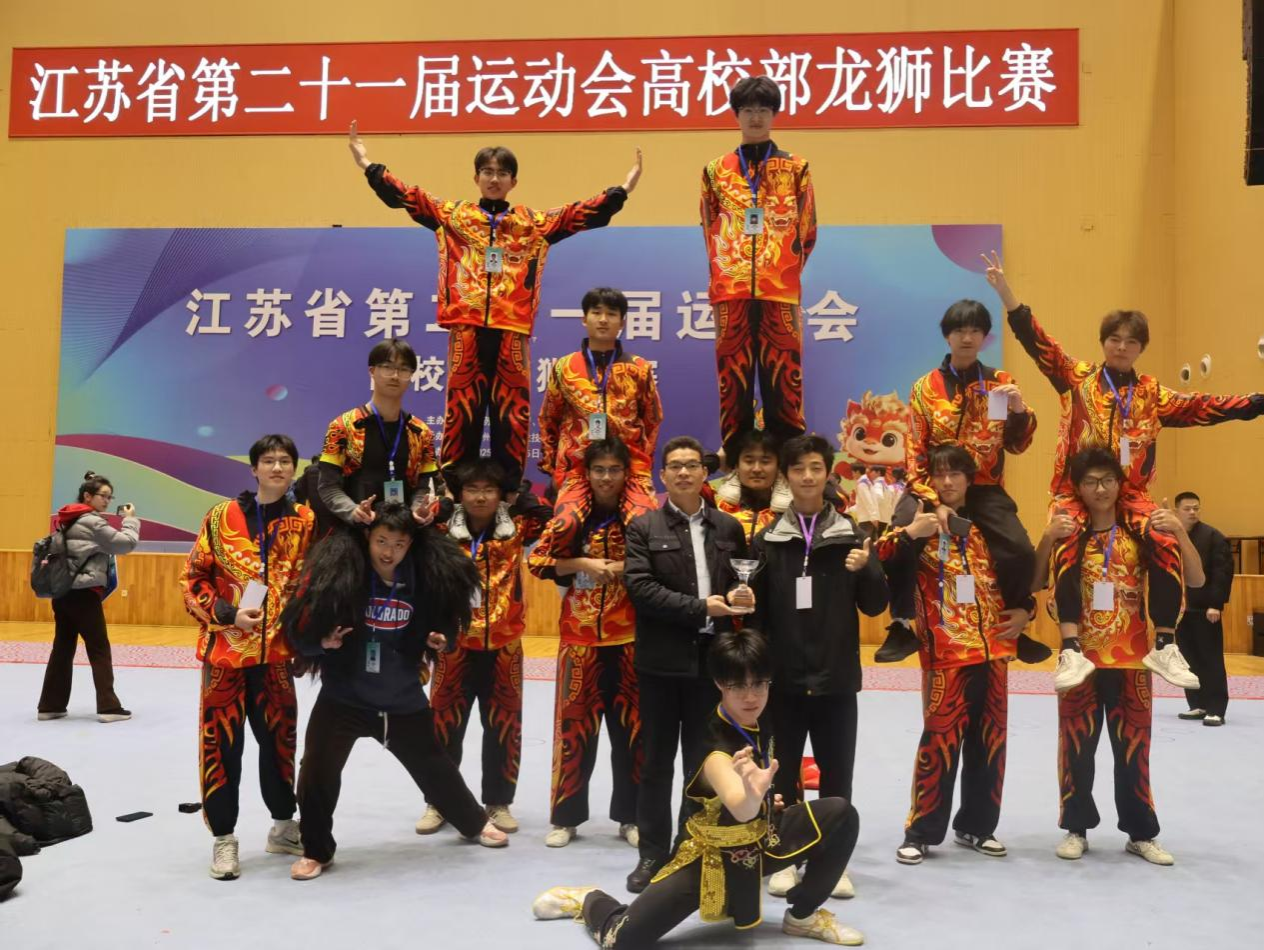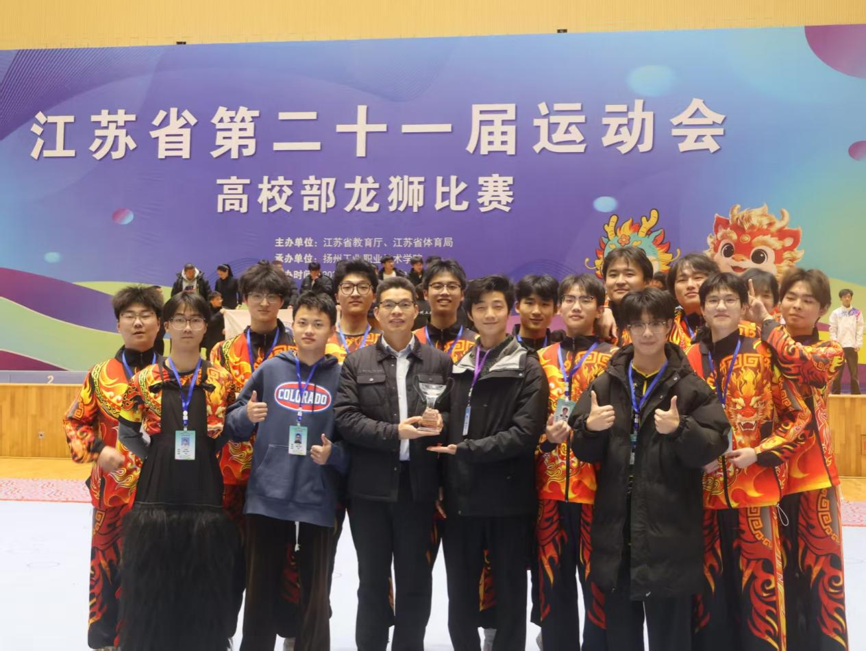 12月15日-18日,由江苏省教育厅、江苏省体育局主办的江苏省第二十一届运动会高校部龙狮比赛在扬州工业职业技术学院落下帷幕。我校由张思锋老师指导的龙狮队获得甲组北狮自选第五名、北狮竞速第六名、舞龙自选第六名,并取得总分第六名的好成绩。